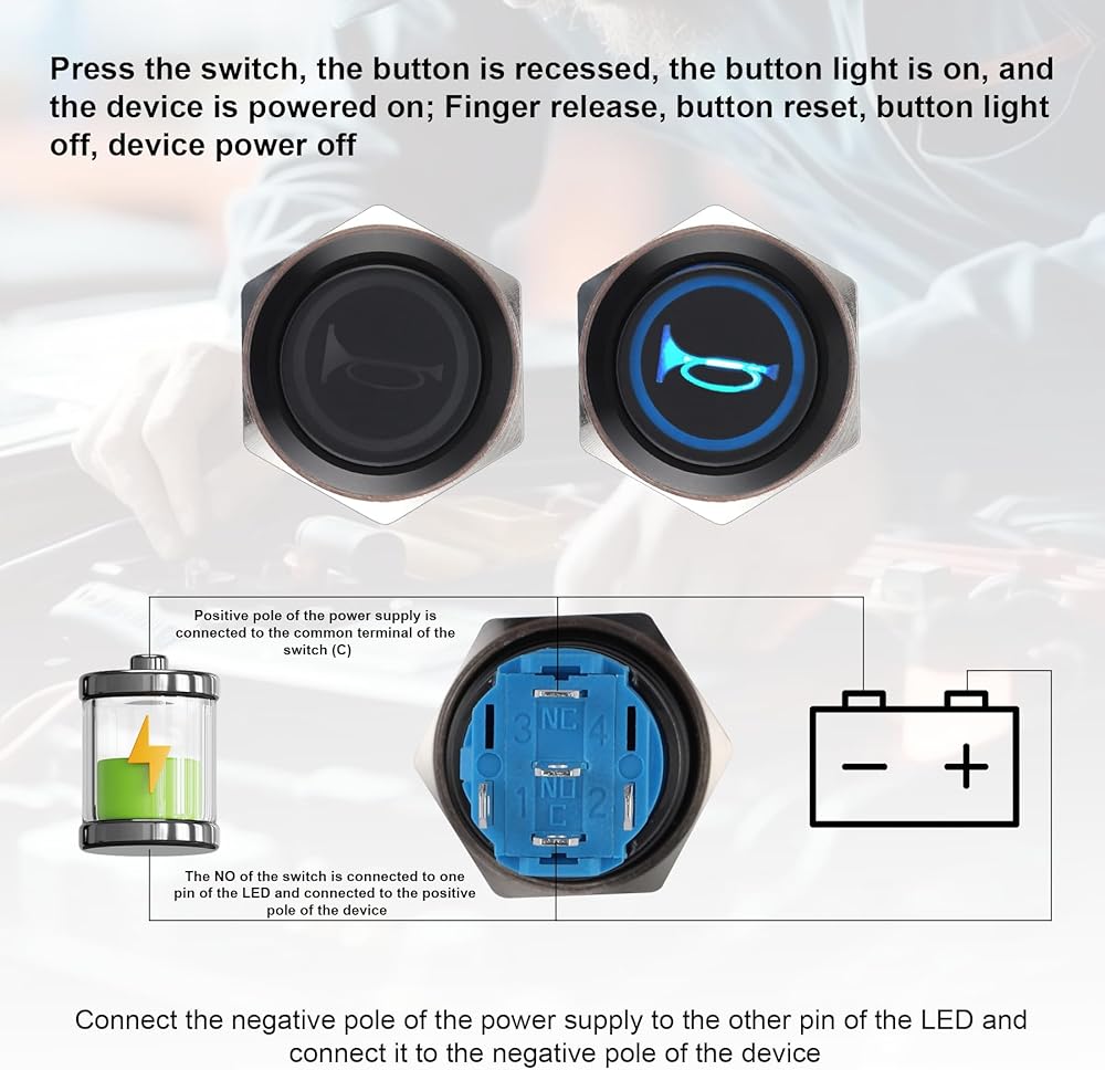 • Momentary switch: Push ON, release OFF(Finger loose, OFF) momentary Version, Pre-wired design, easy to install.