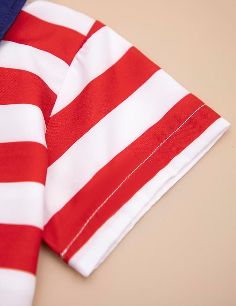 مصمم لمختلف المناسبات، ملابس الأطفال الصغار الخاصة بنا في الرابع من يوليو مناسبة لحفلات عيد الاستقلال، أو مشاهدة مباريات البيسبول، أو الملابس اليومية غير الرسمية. سيُظهر طفلك الصغير انطباعًا وطنيًا أينما ذهب، مع الحفاظ على الراحة والأناقة أيضًا.