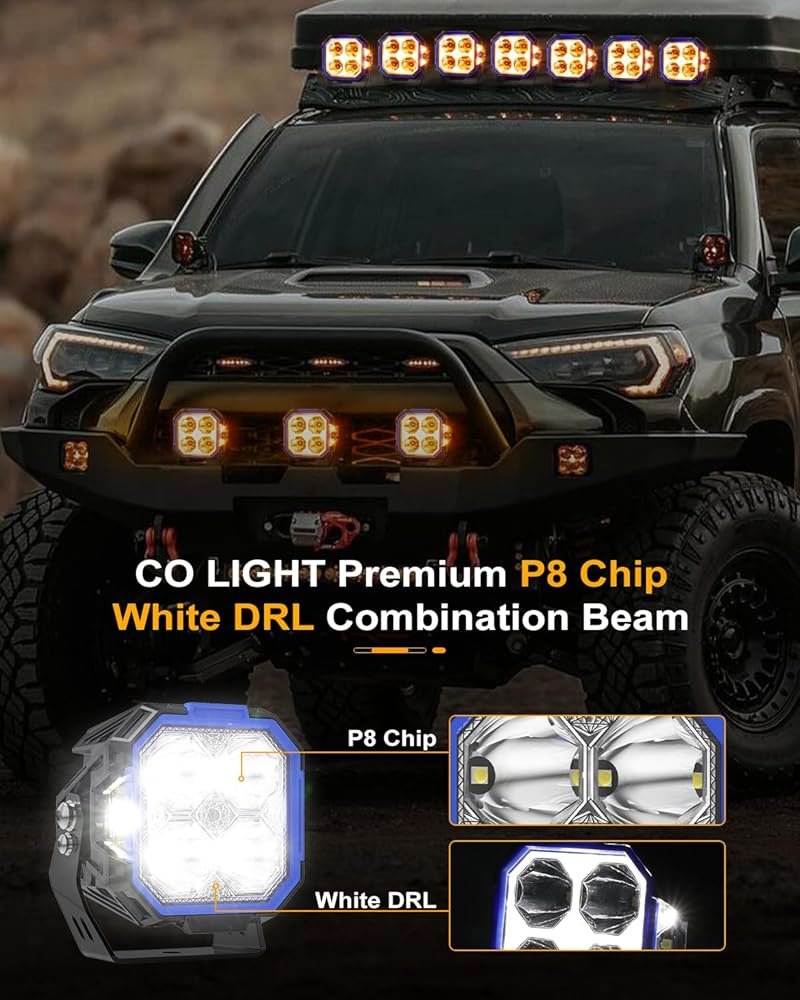 CO LIGHT 3 بوصة 10300LM مكعب القرون 210 درجة زاوية واسعة أصفر/أبيض DRL الطرق الوعرة متعددة الاستخدام للشاحنات 4x4 ATV دراجة نارية بقعة العمل القيادة عوارض الضباب