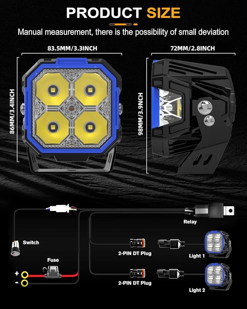 【حل إضاءة شامل لجميع المغامرات】لا تعمل مصابيح القيادة على الطرق الوعرة لدينا كمصابيح للخندق فحسب، بل تضيء الطريق أيضًا، مما يلغي الحاجة إلى تعديلات الزاوية. سواء كنت تتنقل عبر الممرات المظلمة أو الظروف الجوية السيئة، فإن هذه الأضواء هي الرفيق المثالي لضمان سلامتك ورؤيتك في جميع مغامراتك.