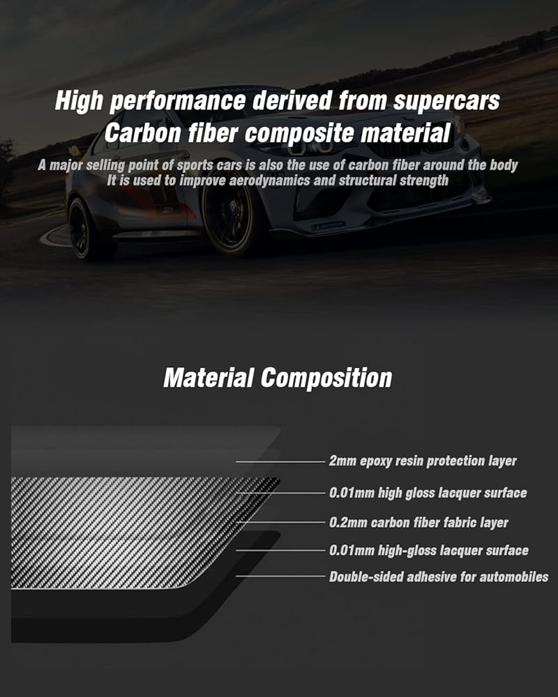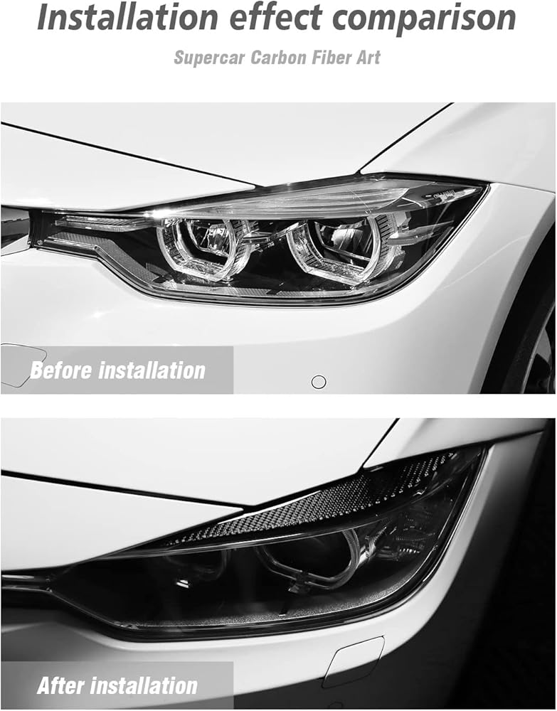 • المواد: أغطية المصابيح الأمامية لسيارة B-M-W مصنوعة من ألياف الكربون الحقيقية عالية الجودة وخفيفة الوزن، مع سطح مصقول ولامع وطلاء شفاف محمي من الأشعة فوق البنفسجية، وقوة عالية، ومقاومة للصدمات. (لا تغسل السيارة في غضون 48 ساعة بعد التثبيت .)