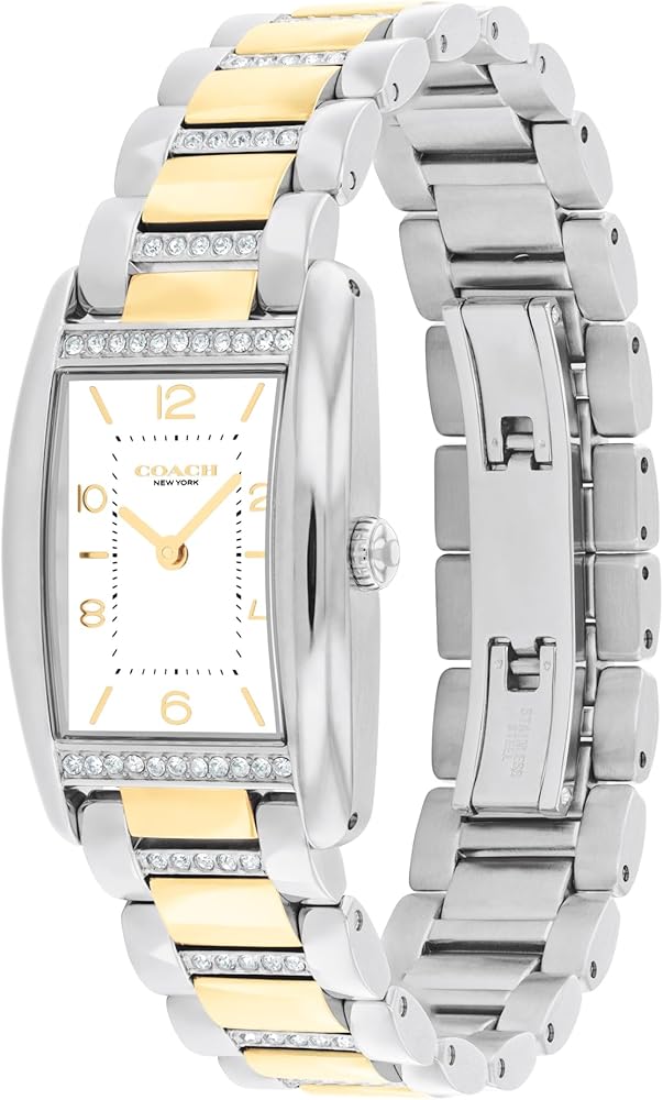 Quality Materials: Coach Women's Reese Two Tone Stainless Steel and Crystal Case, White Dial with a Link Bracelet.