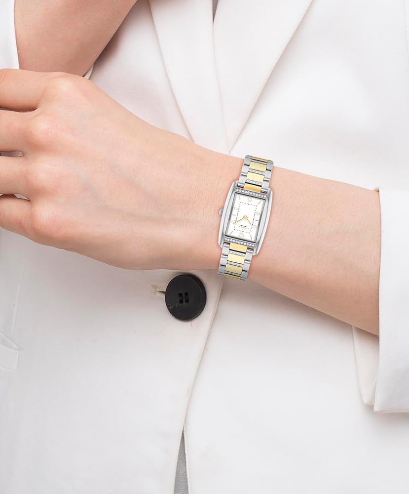 ساعة كوتش ريس النسائية - ساعة كوارتز تانك 2 ساعة مع سوار مرصع بالكريستال - مقاومة للماء حتى عمق 3 ATM/30 مترًا - هدية لها - ساعة عصرية متميزة لكل مناسبة - 24 ملم