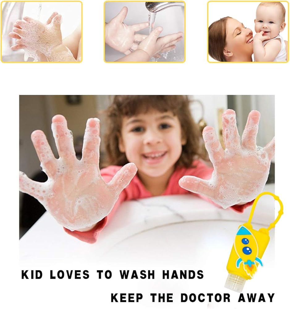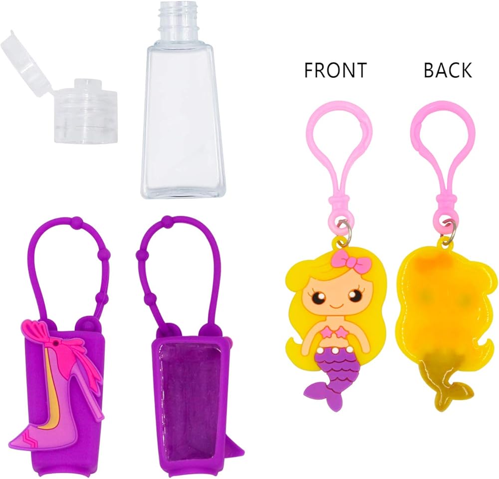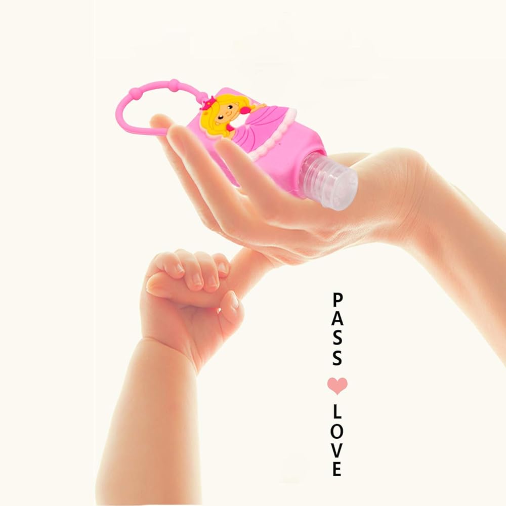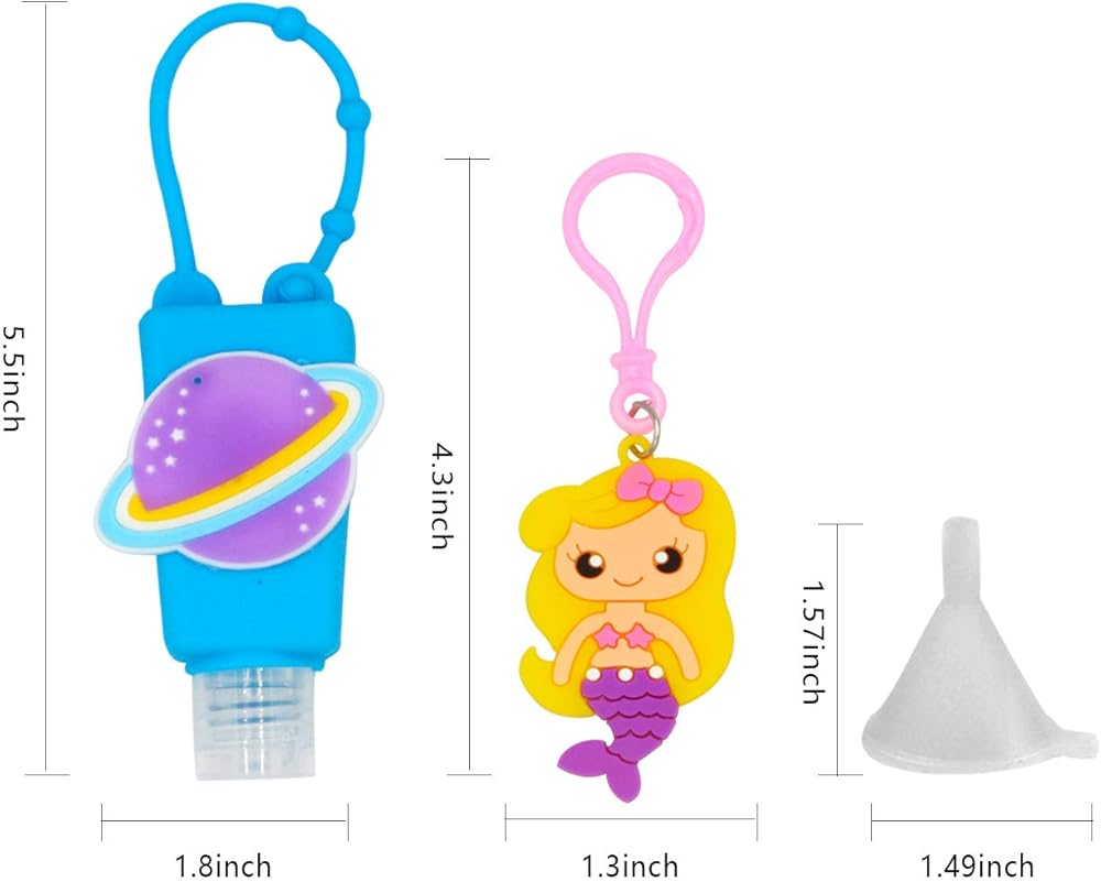 6 x Silicone cartoon bottle holders with Empty travel size bottles