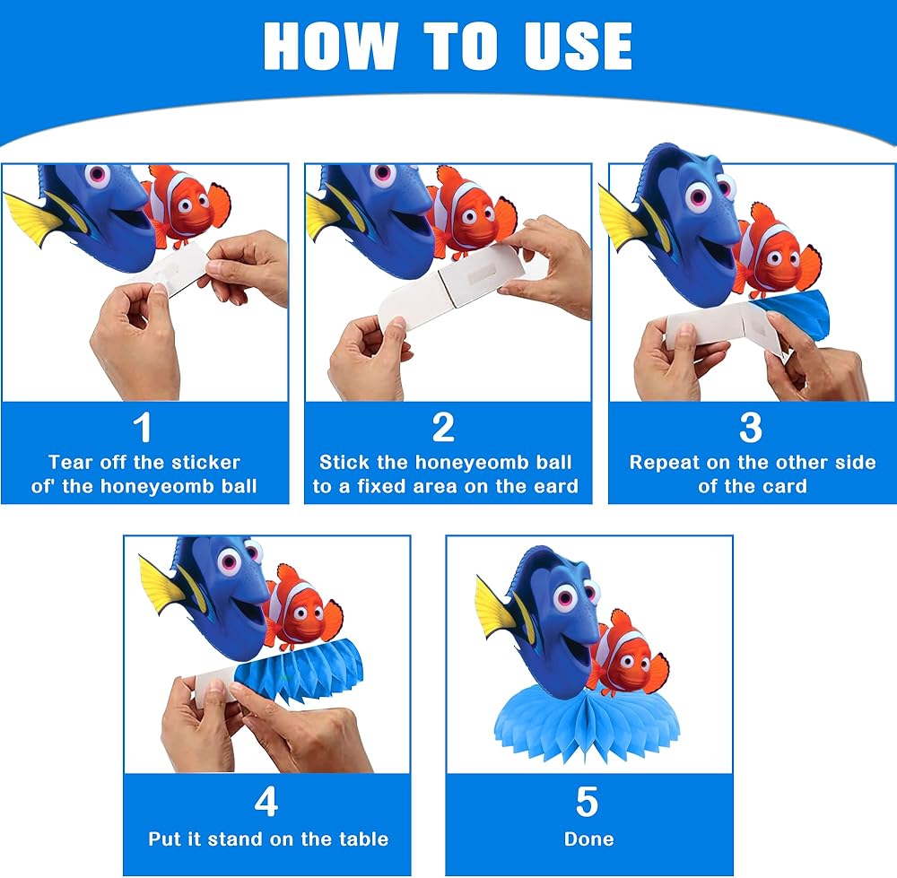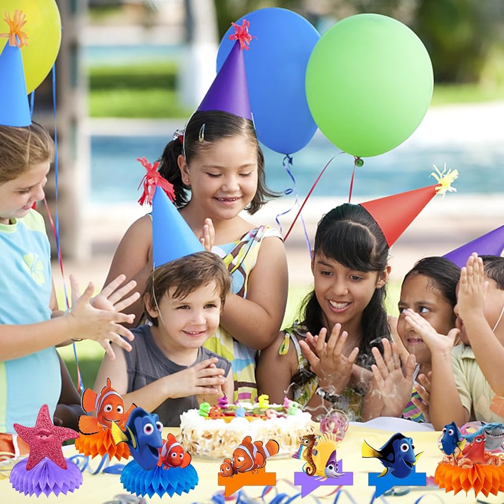 مادة موثوقة: هذه القطع المركزية على شكل قرص العسل من Finding Nemo مصنوعة من بطاقة قوية موثوقة وتستخدم تقنية الطباعة الدقيقة، وبالتالي فهي قوية ومتينة للاستخدام طويل الأمد، وهي ديكورات رائعة لحفلاتك.