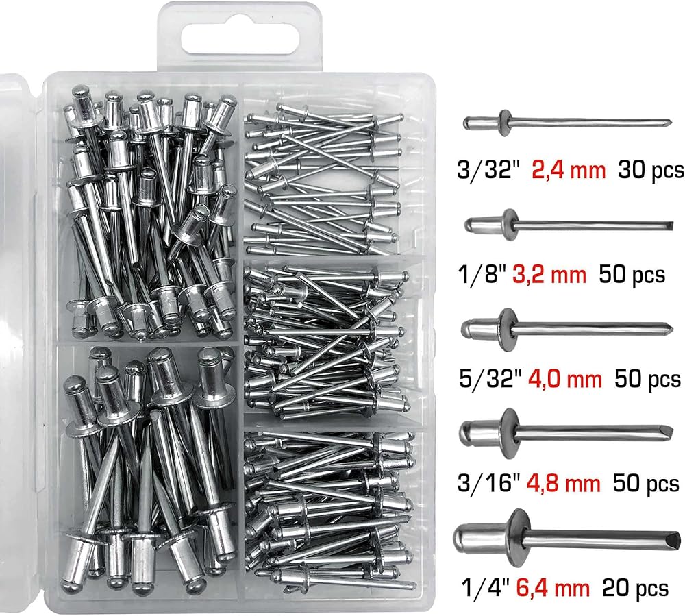 هاوتميك 200 قطعة. مجموعة من 5 مقاسات من مسامير الألمنيوم ذات النهاية المفتوحة للأجهزة الكهربائية المنزلية وأدوات الإضاءة والأثاث الفولاذي وما إلى ذلك HT0201-AR