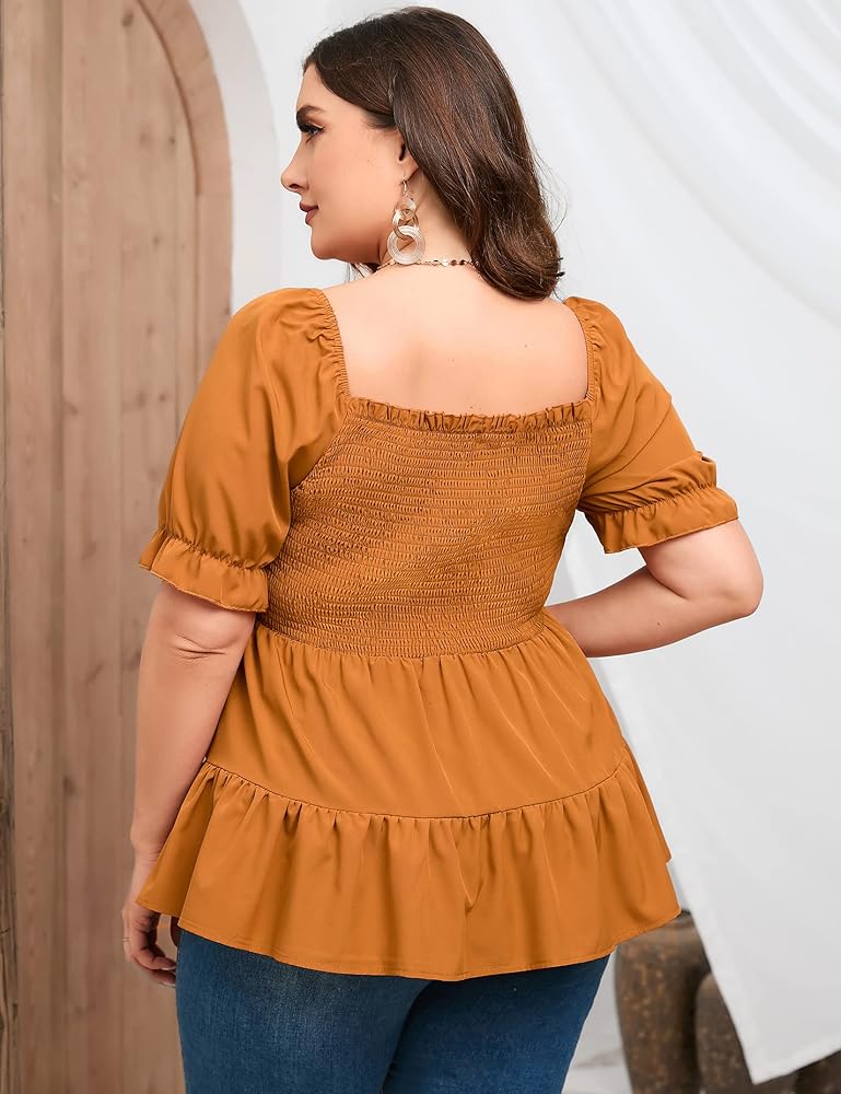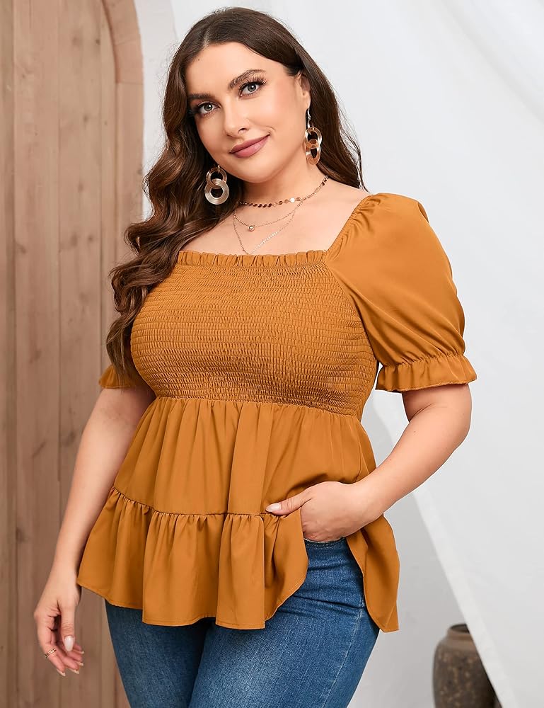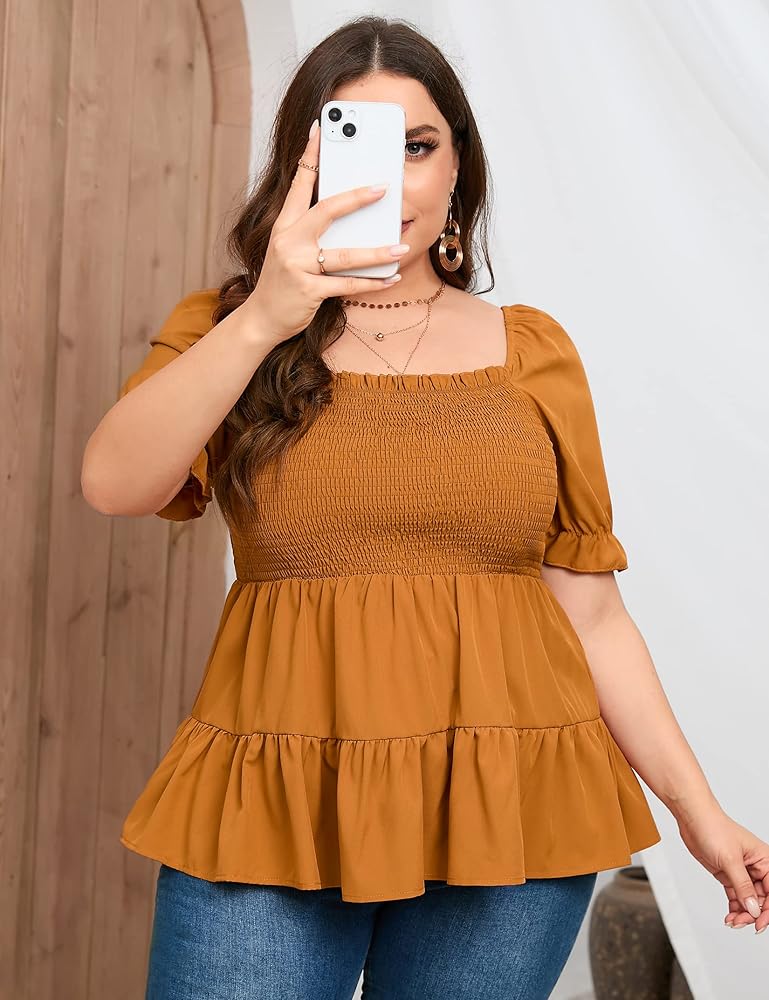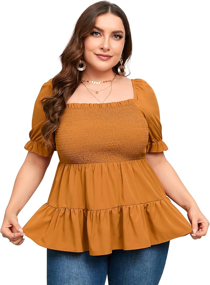 التصميم: سيسلط شد الصدر الضوء على الأجزاء الأكثر جاذبية لديك، في حين أن الحاشية العريضة للجزء السفلي ستخفي بطنك وأردافك ولن تقيد حركتك. يمكن أن يكون خط العنق المربع بكتف واحد، ويمكنك تغيير أسلوبك حسب الرغبة. الأكمام القصيرة المنتفخة ستجعل ذراعيك تبدو نحيفة بينما تظل أنيقة.