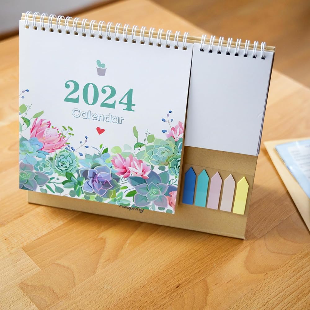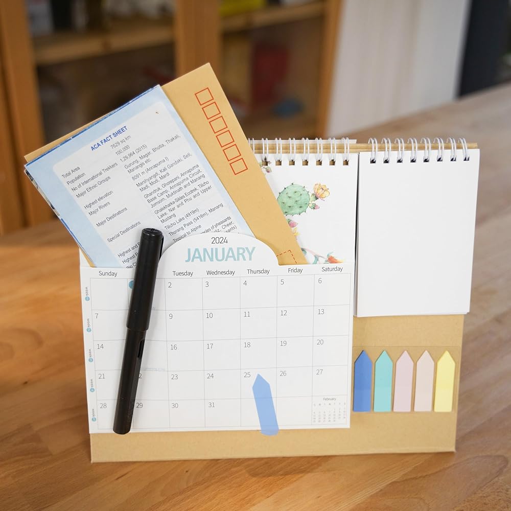 تقويم مكتب Asspring 2024 - تقويم مكتبي متعدد الوظائف قابل للطي 2024 مع جيب لكل شهر وتقويم مع لوحة مذكرة وتقويم مع ملاحظات لاصقة يناير 2024 - ديسمبر 2024، 9.8 بوصة × 8.6 بوصة،