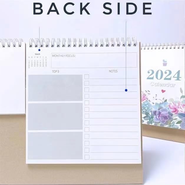 • Perfect Size : This stand up desk calendar 2024 covers Jan 2024 - Dec 2024 with the major holiday listed. And the size of 9.8" x 8.6" is perfect for your desk, table, counter or ledge to help you focus on easily and effective planning, scheduling and tracking your daily life.