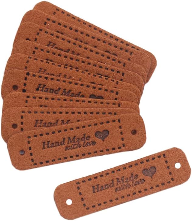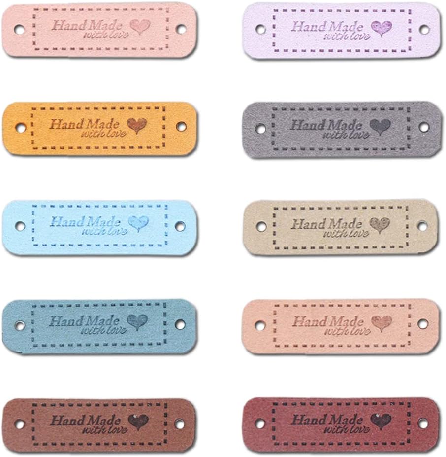 50 قطعة من علامات Borsgye المصنوعة من جلد البولي يوريثان، علامة منقوشة يدويًا من الجلد الصناعي، خياطة على ملصقات تزيين كروشيه، ملصقات حياكة DIY، حقائب جينز، أحذية، قبعة، إكسسوارات ملابس مع قلب - 10 ألوان