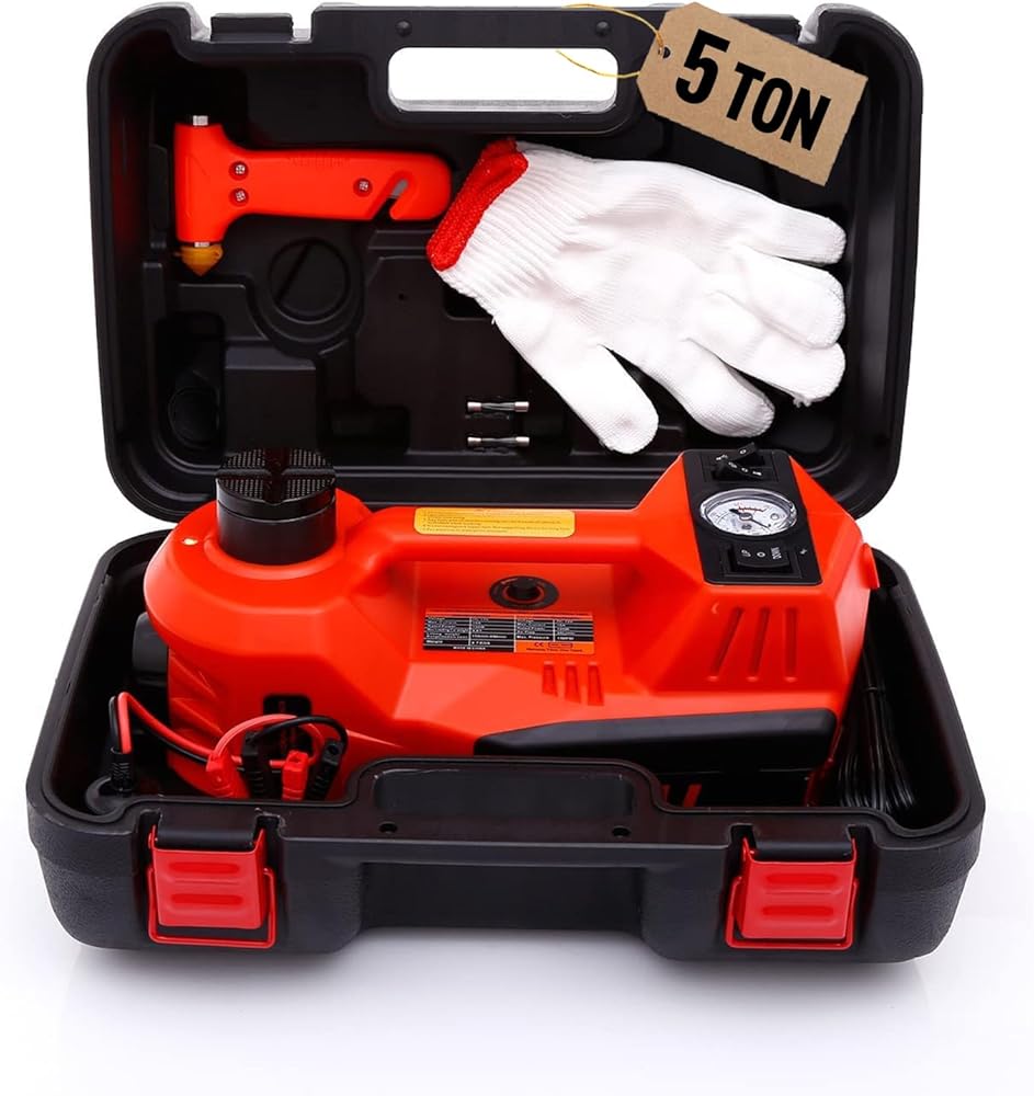 مجموعة رافعة السيارة الهيدروليكية - طقم رافعة أرضية السيارة 5 في 1 رافعة إطار شاحنة 5 طن مع مضخة إطارات مدمجة ومفتاح ربط in Kuwait