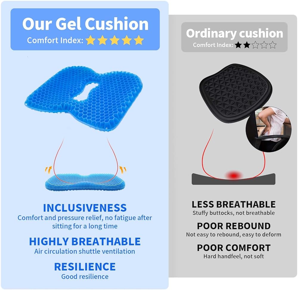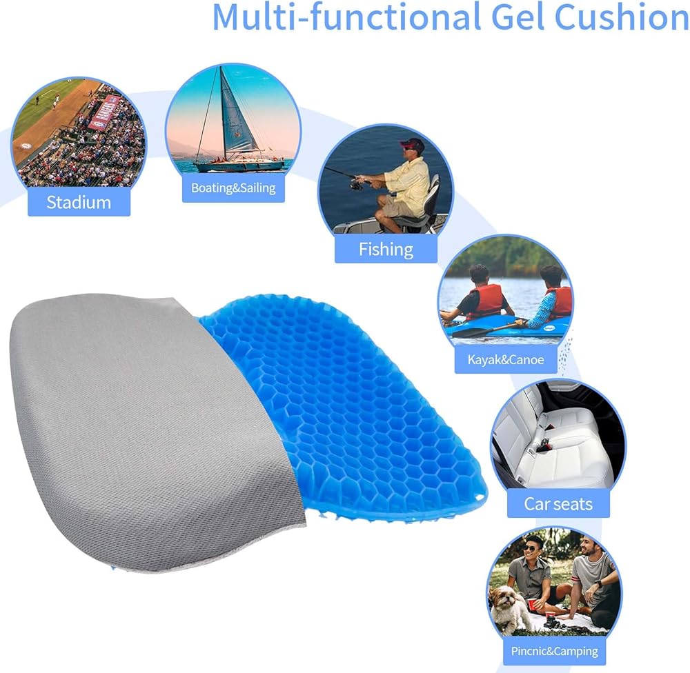تعزيز التهوية والراحة: مع تصميم جل سميك على شكل قرص العسل، تزيد وسادة مقعد الكاياك من تدفق الهواء للحصول على أقصى درجات الراحة في التبريد وتمنع عرق المقعد. يضمن الهيكل المبتكر ذو الوجهين تهوية وراحة فائقة، مما يجعله مثاليًا للاستخدام لفترات طويلة على الماء.