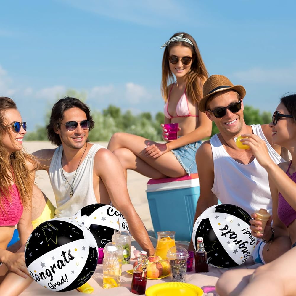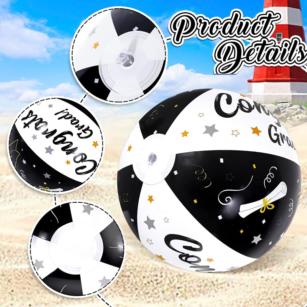 Unique Design - Our beach ball is mainly colored in black and white, and printed with the words of congrats grad and patterned with grad cap, scroll, which will create more fun for your grad party.