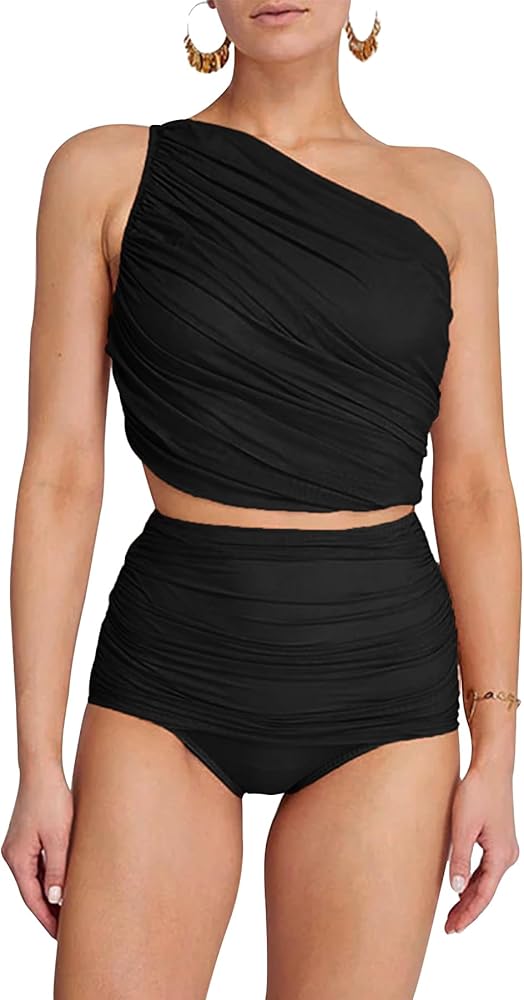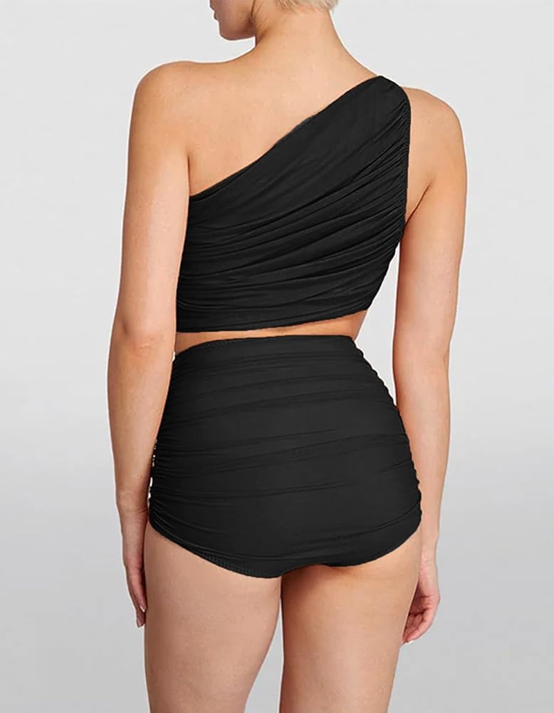 بيكيني علوي بكتف واحد: بتصميم غير متماثل، يوفر الجزء العلوي من ثوب السباحة تغطية متواضعة مع حزام الكتف العريض، مما يخلق مظهرًا فريدًا وجذابًا.
