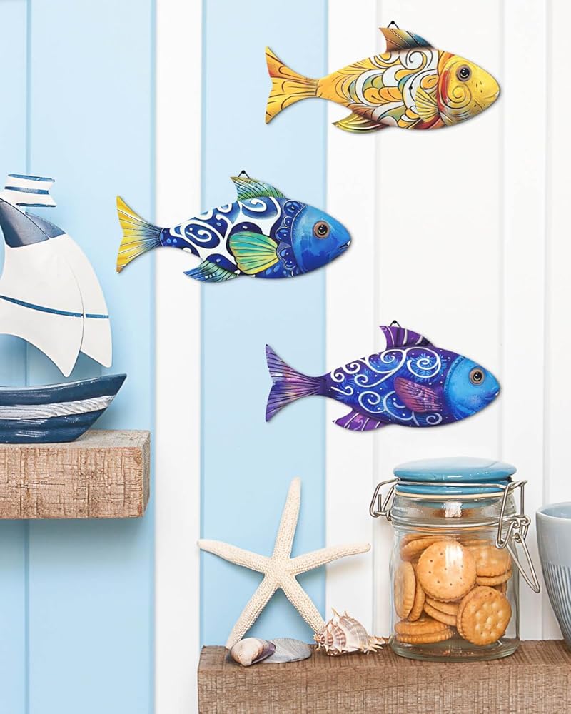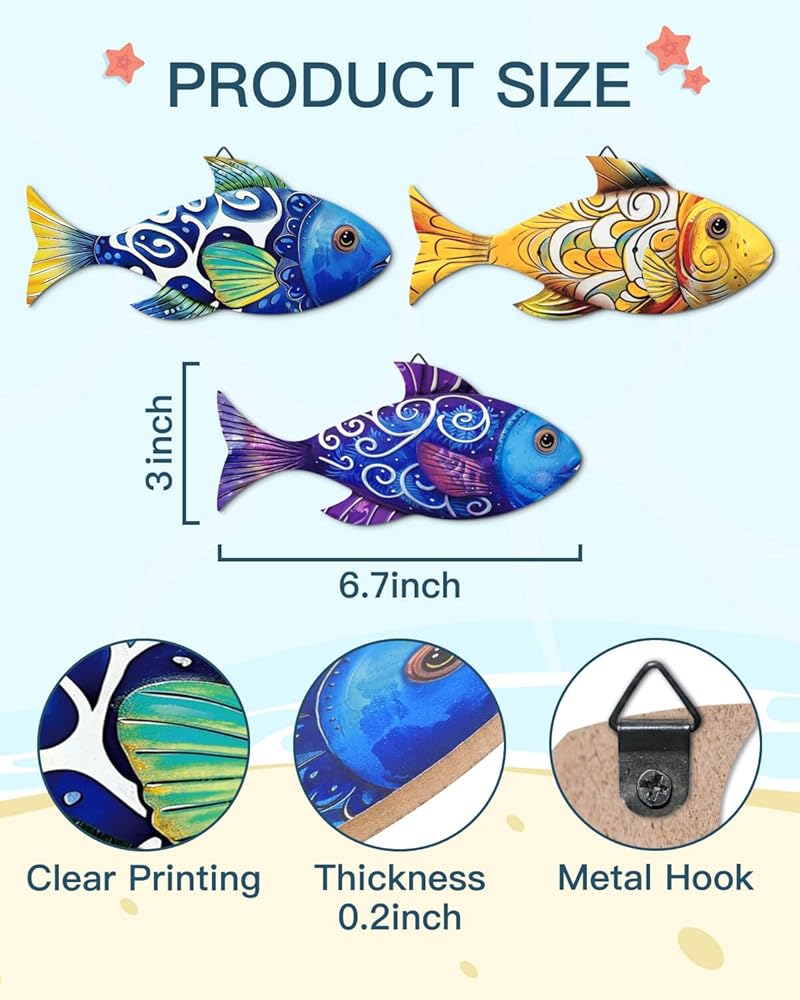 مجموعة تزيين الأسماك اللطيفة: سوف تحصل على 3 قطع من القطع الفنية الجدارية الخشبية للأسماك البحرية، مع 3 مجموعات مختلفة من الأنماط، كافية لتلبية احتياجات الديكور الخاصة بك، مما يسمح لك بعمل ترتيبات مختلفة حسب الرغبة.