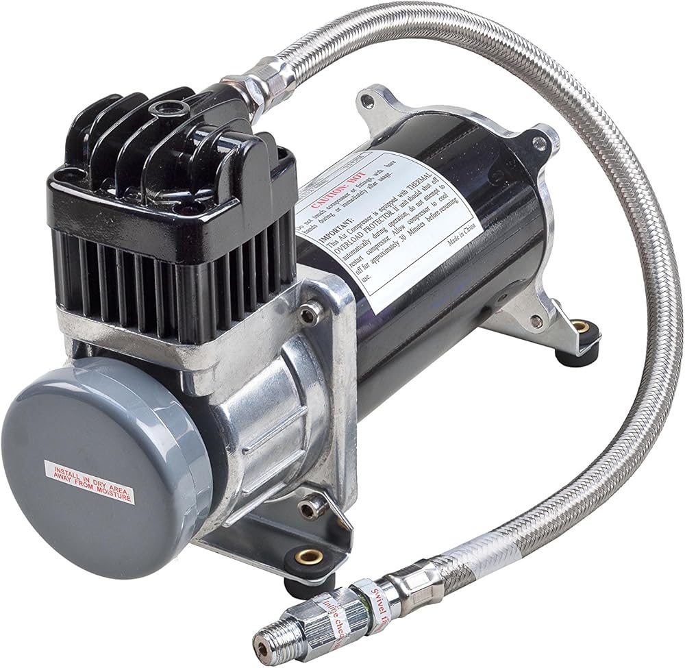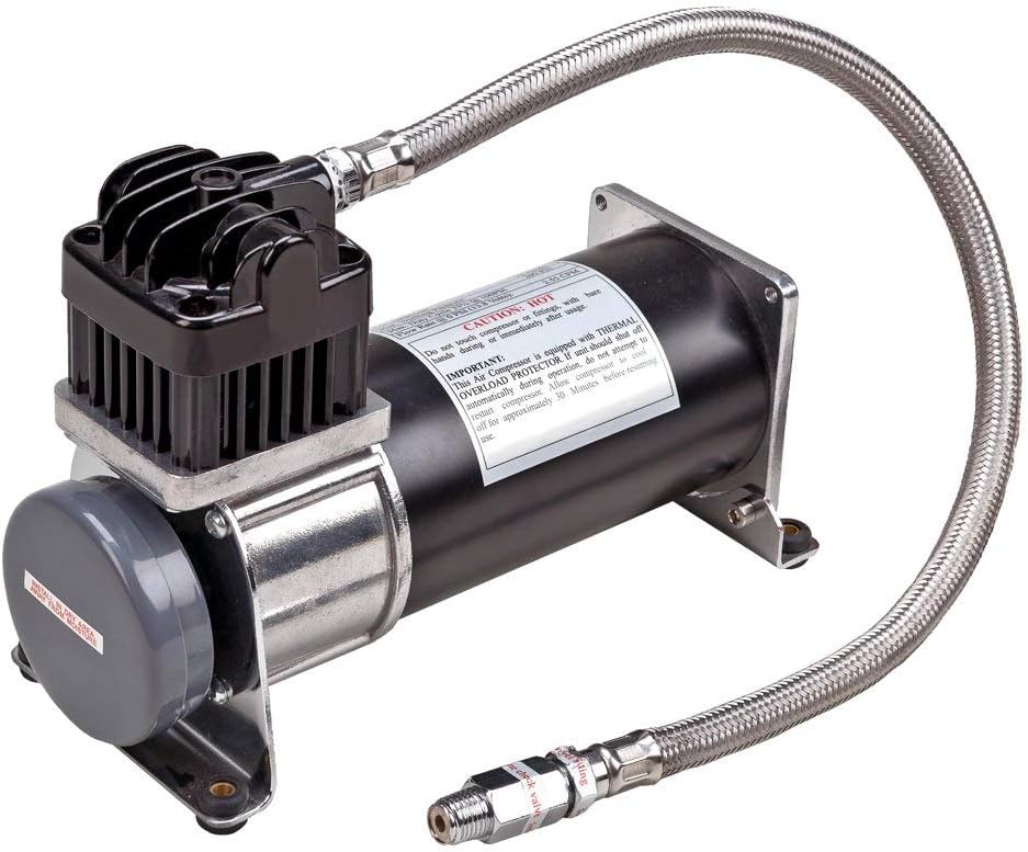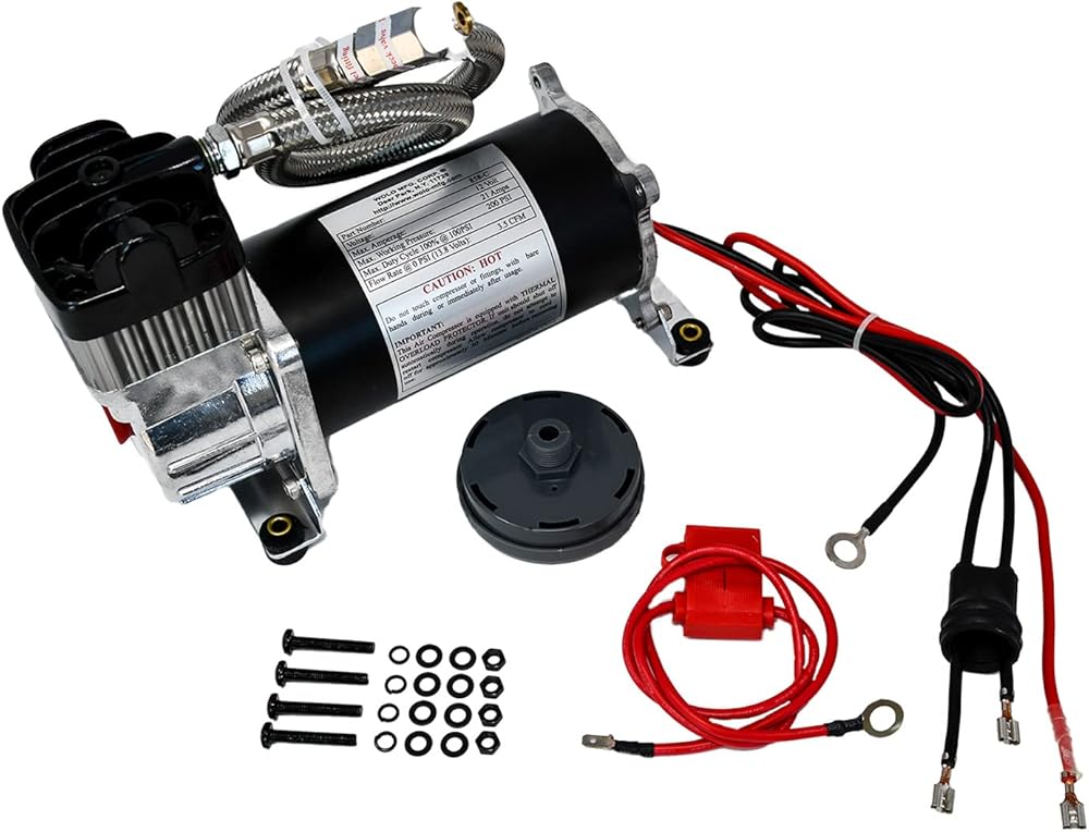 The Wolo 858-C is a replacement compressor that is designed for applications that require filling large volume air tanks, up to 2.5-gallons. The tank recovery time is shorter because of the high volume output the pump produces, 2.55 CFM. The compressor is equipped with an extra-long stainless steel feeder hose that allows for easier installation. The pump's cylinder and head have been designed with cooling fins that allows the compressor to have a 33 percent at 100-PSI duty cycle that. The compressor's heavy-duty 12-volt motor is balanced to precision and there is heavy rubber bushing mounted into the base to virtually eliminate all vibration. Tornado will provide a reliable, cost-effective solution when a heavy-duty compressor is needed. The compressor comes complete with all mounting hardware, stainless steel high pressure hose with an in-line check valve and installation instructions in English/Spanish.