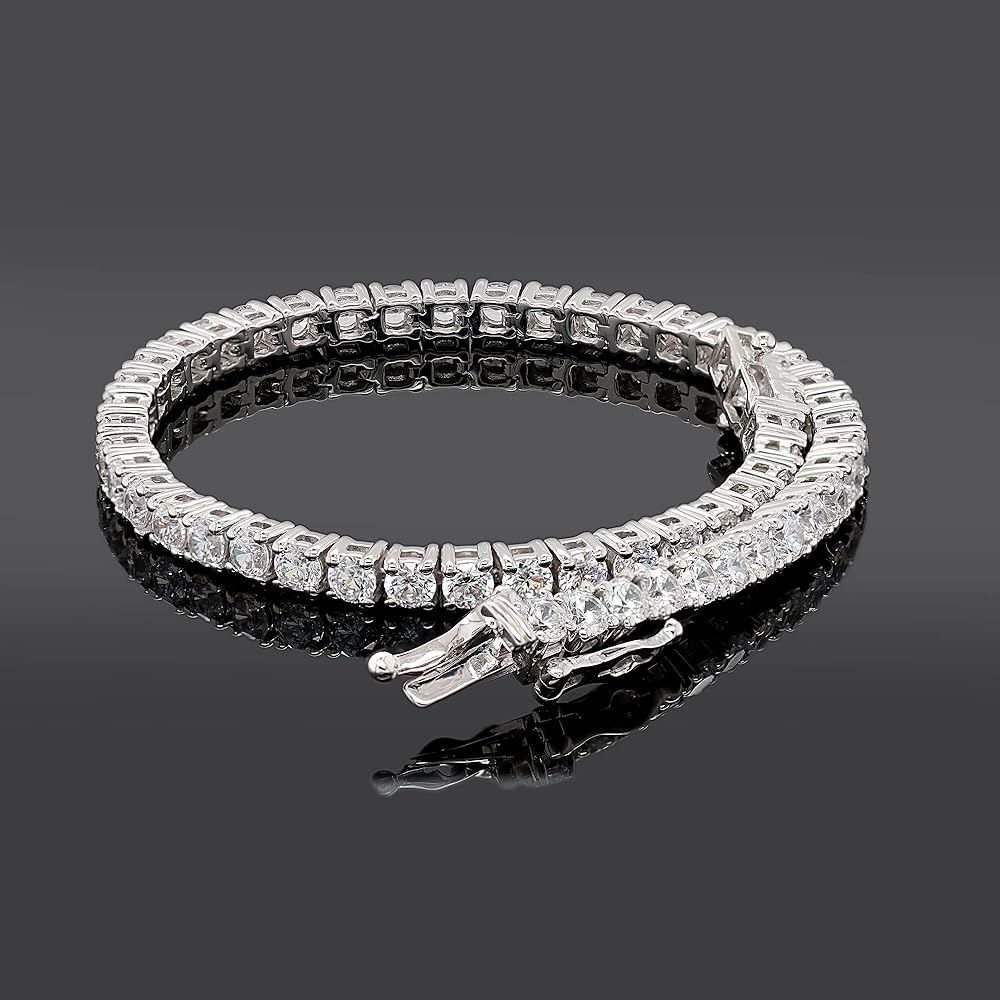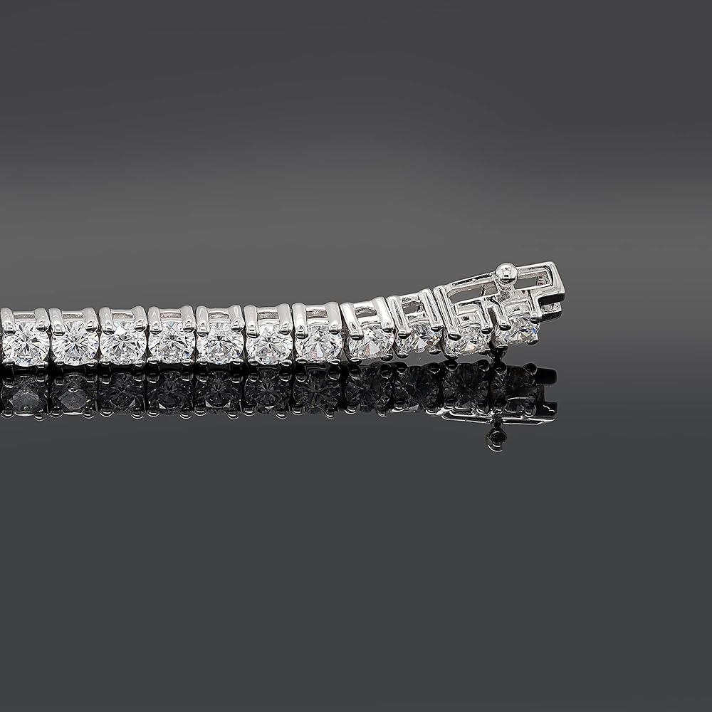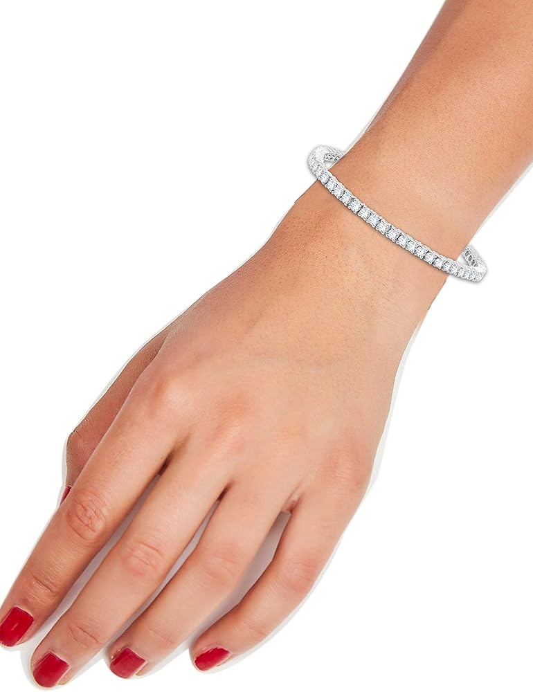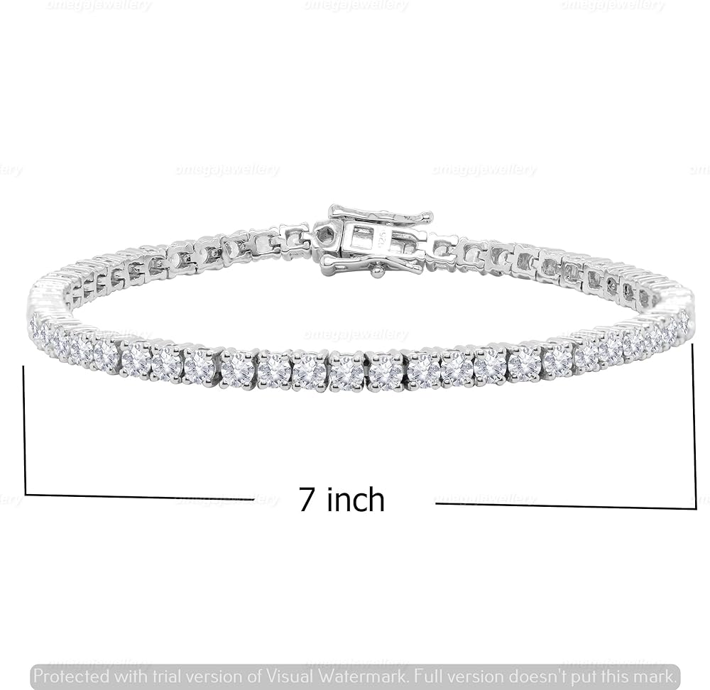 هدايا عيد الأم أساور تنس ساحرة من الألماس المقلد 3 مم للنساء والفتيات - سوار تنس من الذهب الأبيض عيار 14 قيراط أكثر من 925 من الفضة الإسترلينية مقاس 7 بوصة (وضوح - VVS1، لون أبيض، 5.50 قيراط)