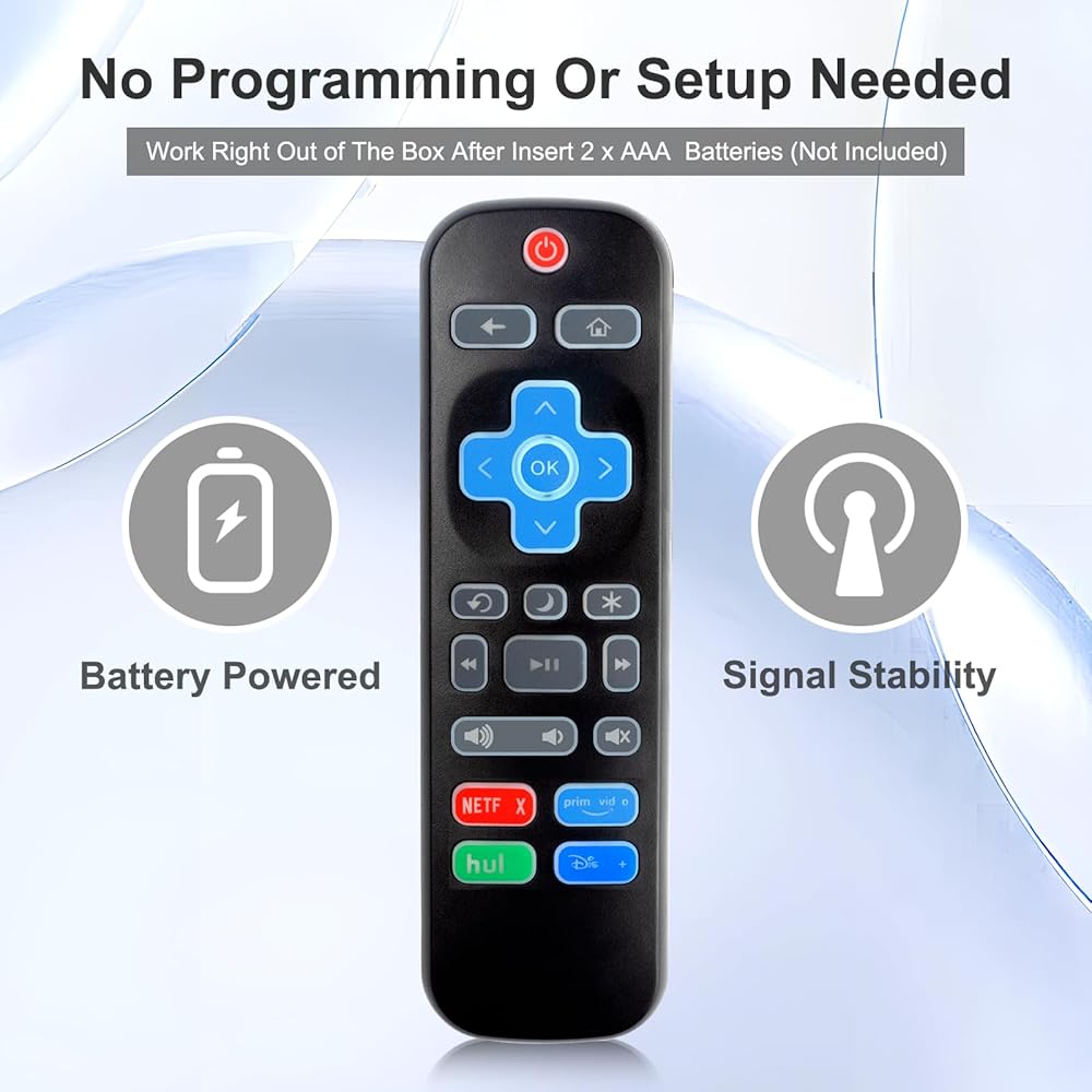 【جهاز تحكم عالمي لأجهزة تلفزيون روكو】متوافق مع أجهزة تلفزيون TCL/Hisense/Onn /Sharp/Element/Westinghouse/Philips/Insignia/JVC/RCA/Hitachi /Sanyo Roku. العمل خارج الصندوق، سهل الاستخدام.