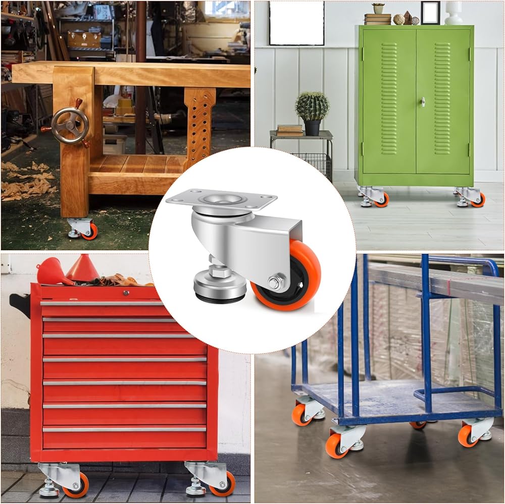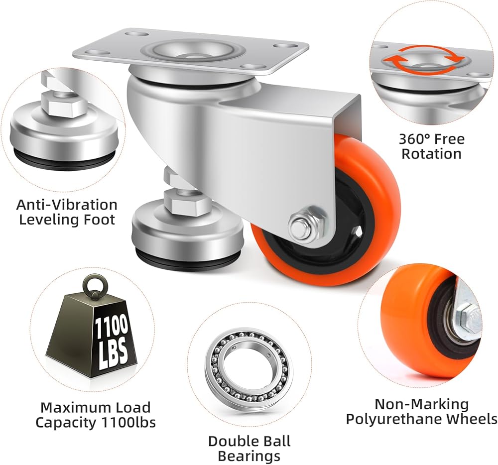 👍آمنة ومستقرة: عجلات التسوية شديدة التحمل هذه، يمكنك تحريك أو وضع معداتك دون عناء حسب الرغبة، ويمكن للعجلات القابلة للسحب ذات أقدام التسوية امتصاص الاهتزازات أثناء التشغيل، مما يخلق بيئة عمل آمنة ومستقرة.