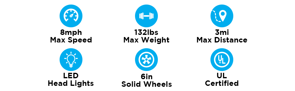 بطارية طويلة الأمد - تعمل البطارية عالية الجهد على تشغيل محرك موثوق به لتعزيز سرعة جيدة وصعود سلس على المنحدرات. يتم شحن بطارية ليثيوم أيون بقوة 36 فولت (المعتمدة) بالكامل خلال 6 ساعات، أو مسافة 0.5 ميل في ساعة واحدة من الشحن