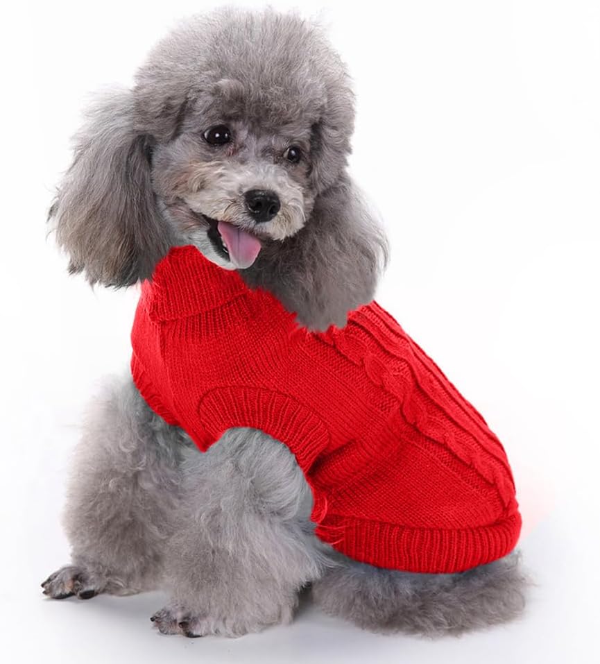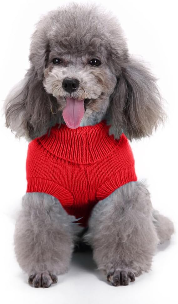 Idepet Turtleneck Dog Sweater, Classic Knitwear Dog Pullover Sweaters Warm Winter Pet Apparel Knitted Puppy Clothes for Small Dogs and Cats