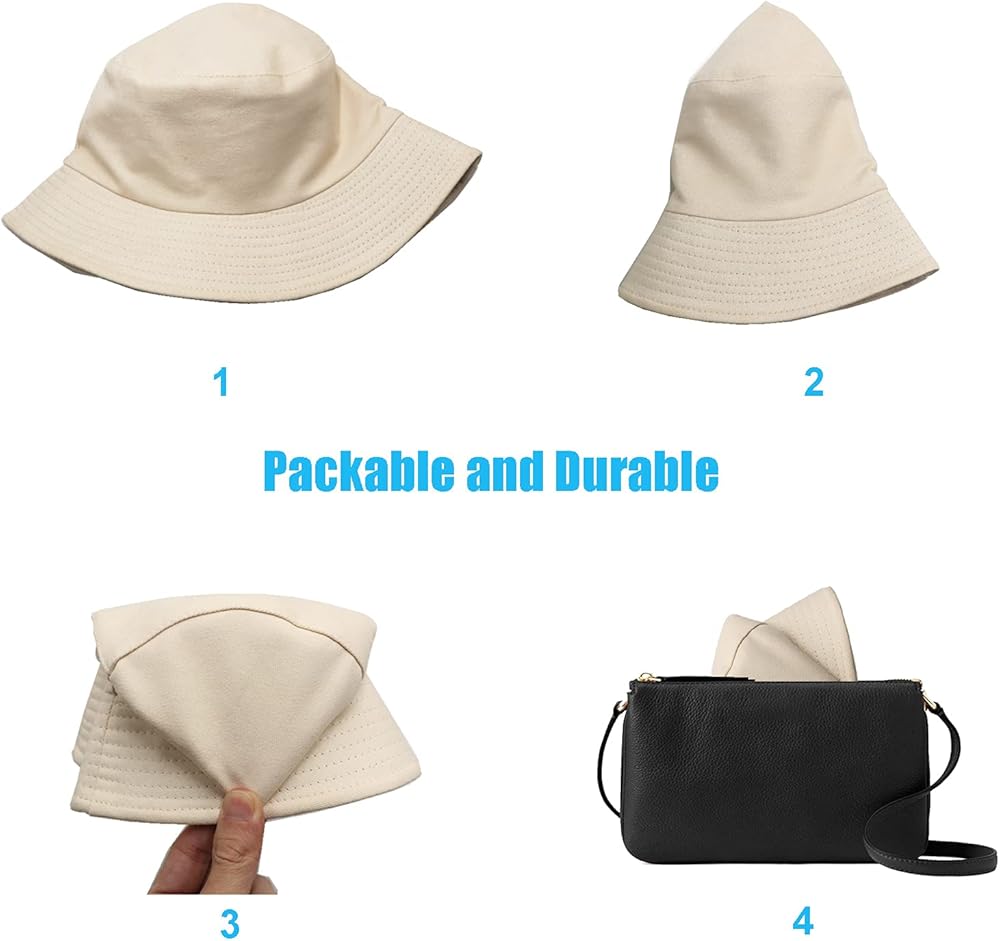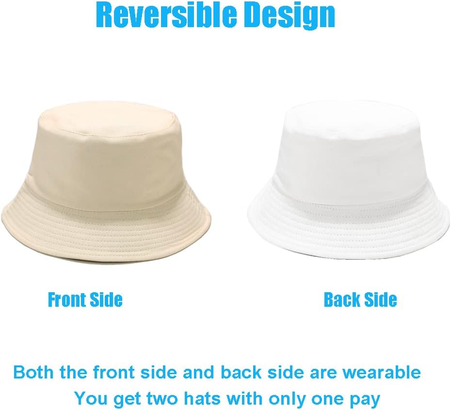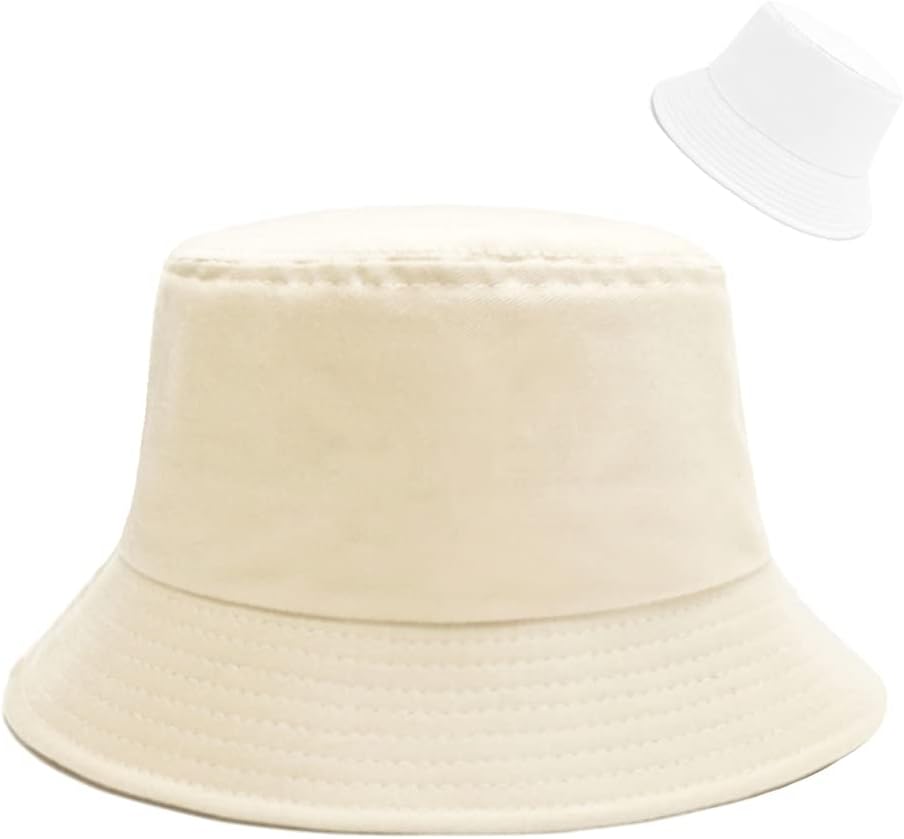 قبعة دلو Sydbecs للنساء والرجال، قبعة صيفية للشاطئ من القطن ذات وجهين، نمط بلون موحد (B بيج/أبيض ذو وجهين)