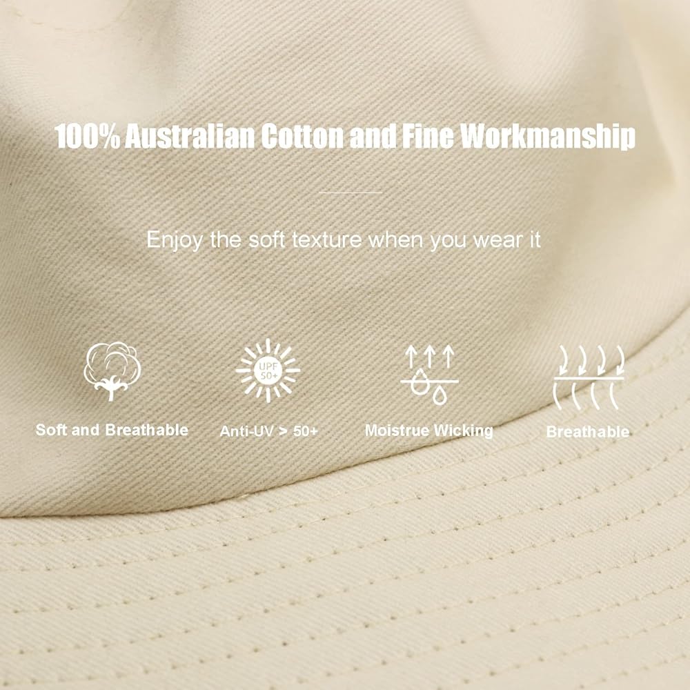 - هذه القبعة مصنوعة من القطن الأسترالي الخالص بنسبة 100%، وهو أكثر نعومة ومسامية للغاية مقارنة بالقطن العادي