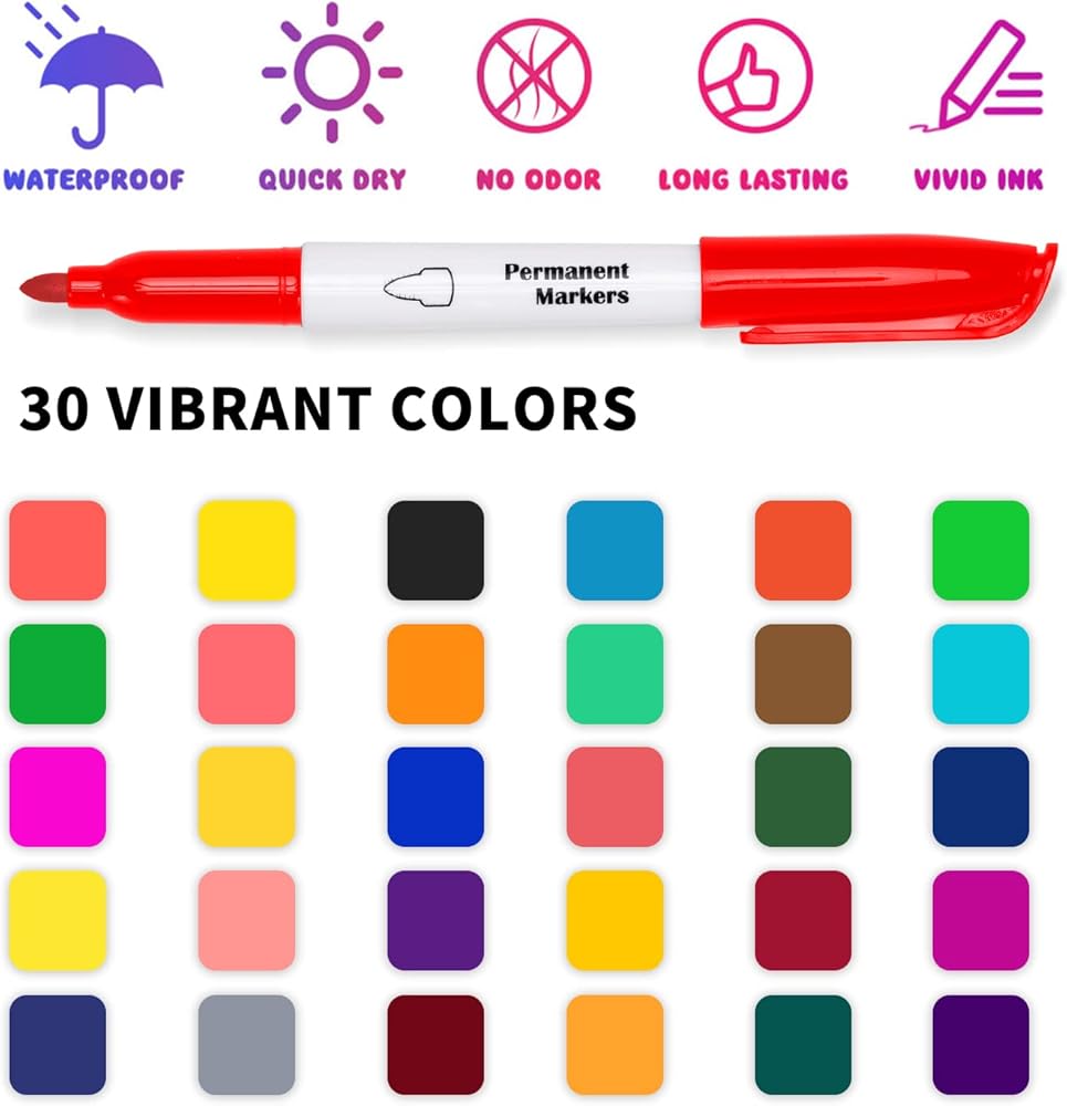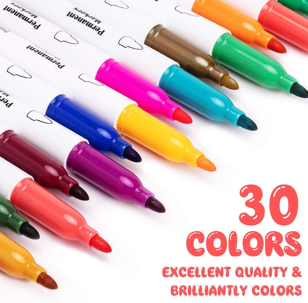 • Reaeon permanent marker set provides you 30 Colors to chose from. Those brilliant colors can create eye-popping, bright impression