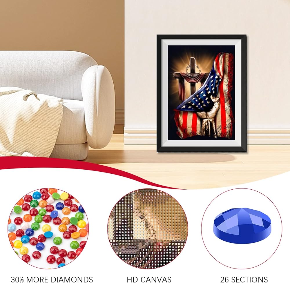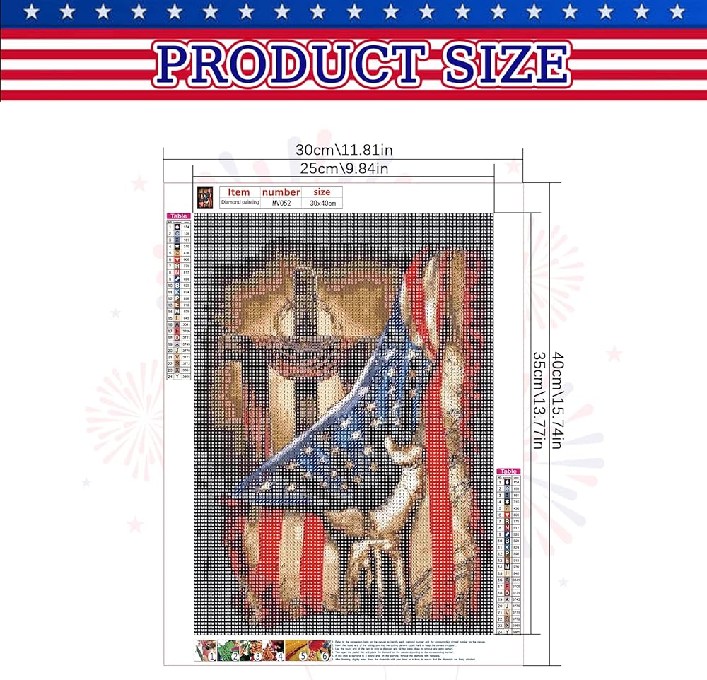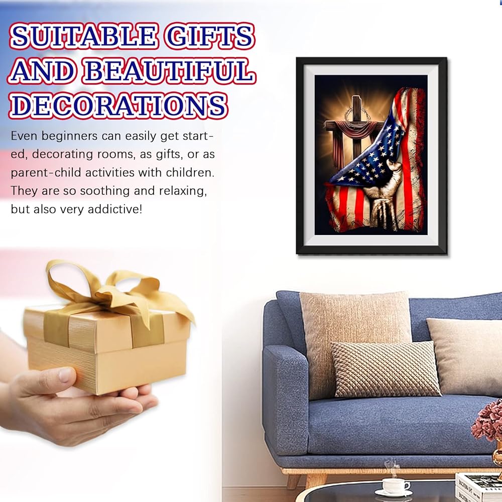 مجموعات الطلاء الماسي 5D DIY للبالغين، علم وطني يد وعبر الماس فن حفر كامل كريستال حجر الراين صور تطريز فنون حرفية لديكور جدار المنزل، موضوع العلم الأمريكي، 12 × 16 بوصة