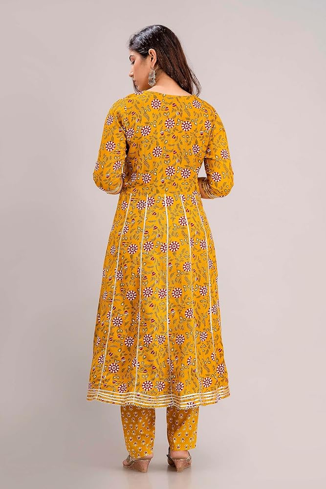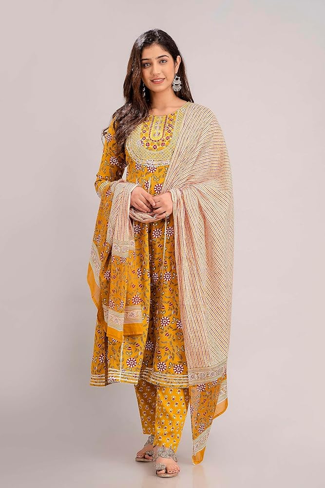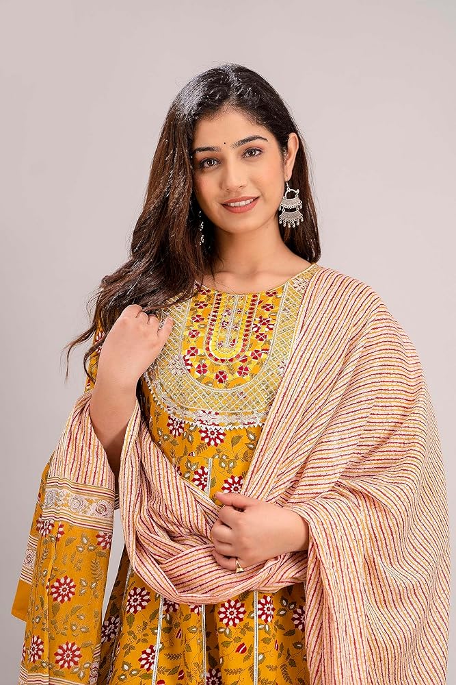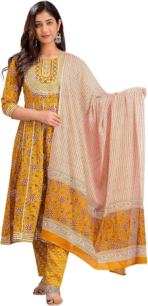 Salwar Suits : Pleated Kurta Pant And Solid Dupatta Set