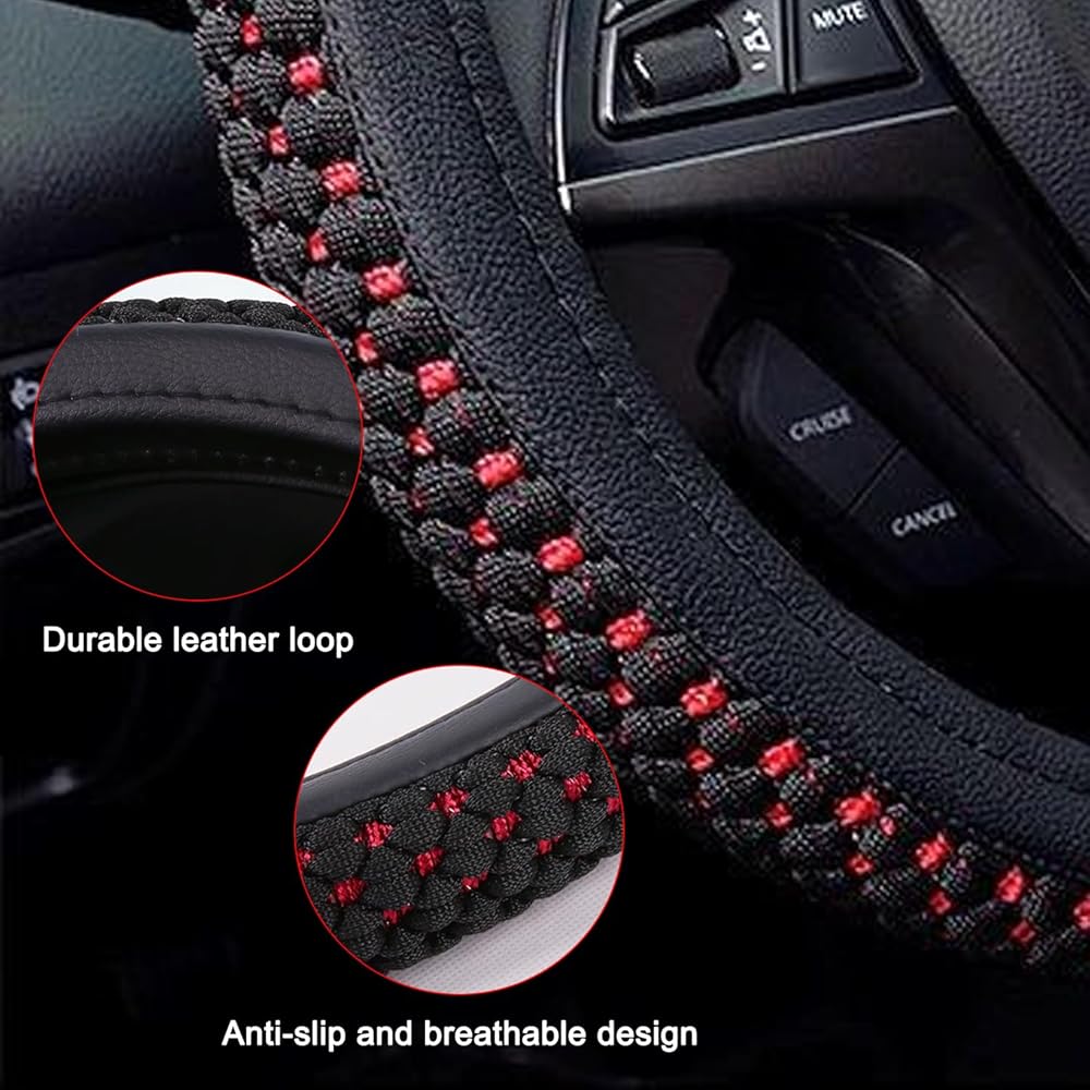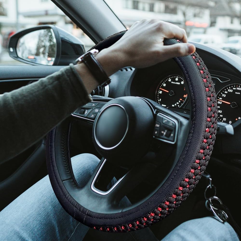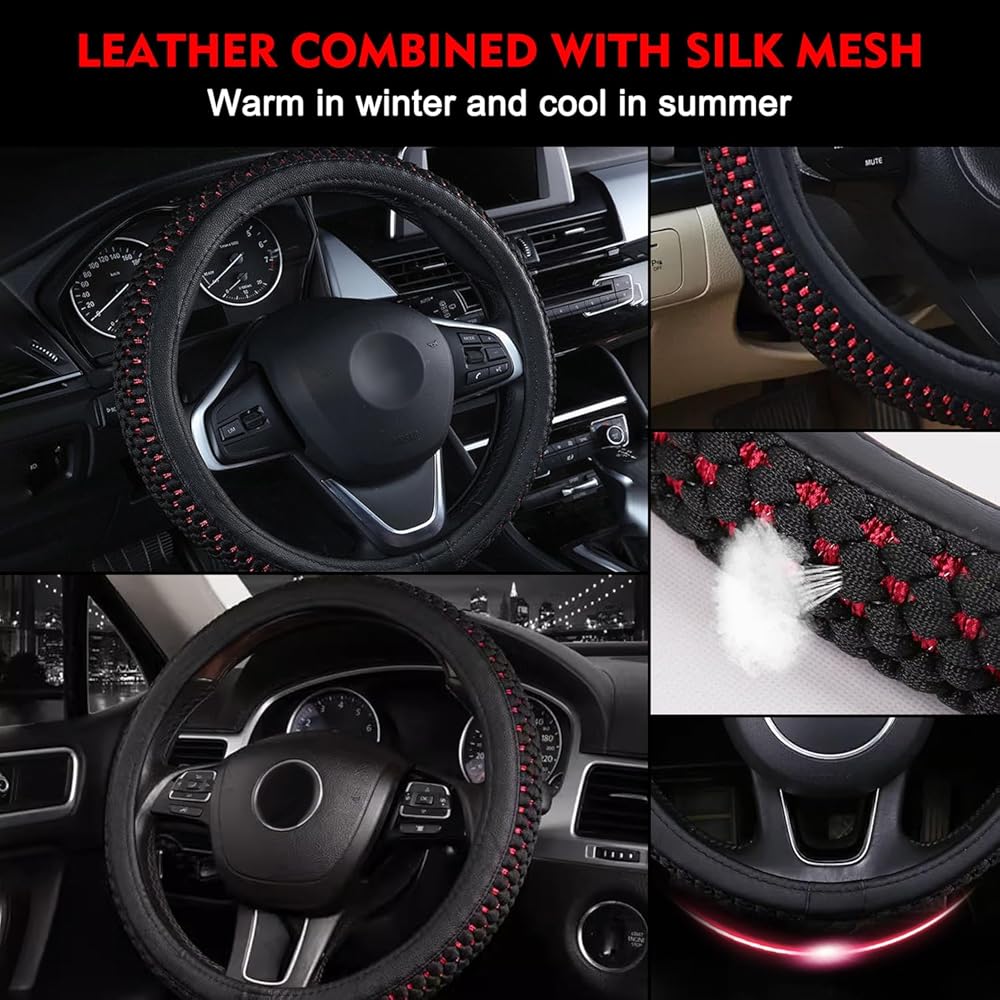 【HIGH QUALITY MATERIAL】The outer layer of this steering wheel cover is made of soft and comfortable microfiber breathable ice silk, which is comfortable and skin-friendly. The interior is made of high-quality fabric, which provides better steering wheel grip and gives you greater control on the road.