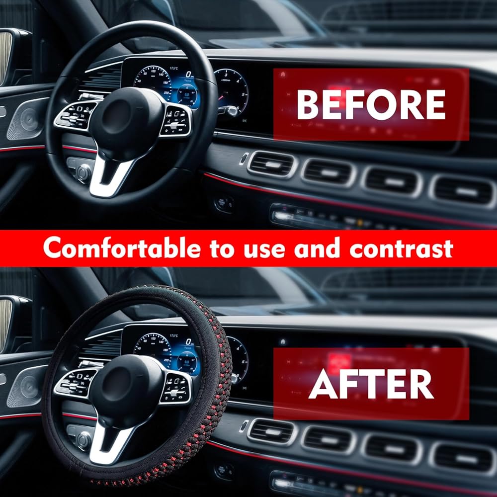 【Easy to install 】The steering wheel cover adopts elastic design, you can easily install this steering wheel cover without any tools. Not only does it improve safety while driving, it also keeps your steering wheel intact.