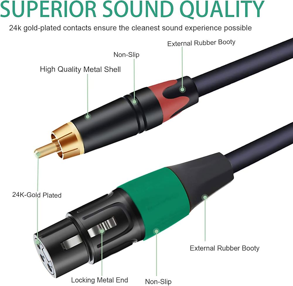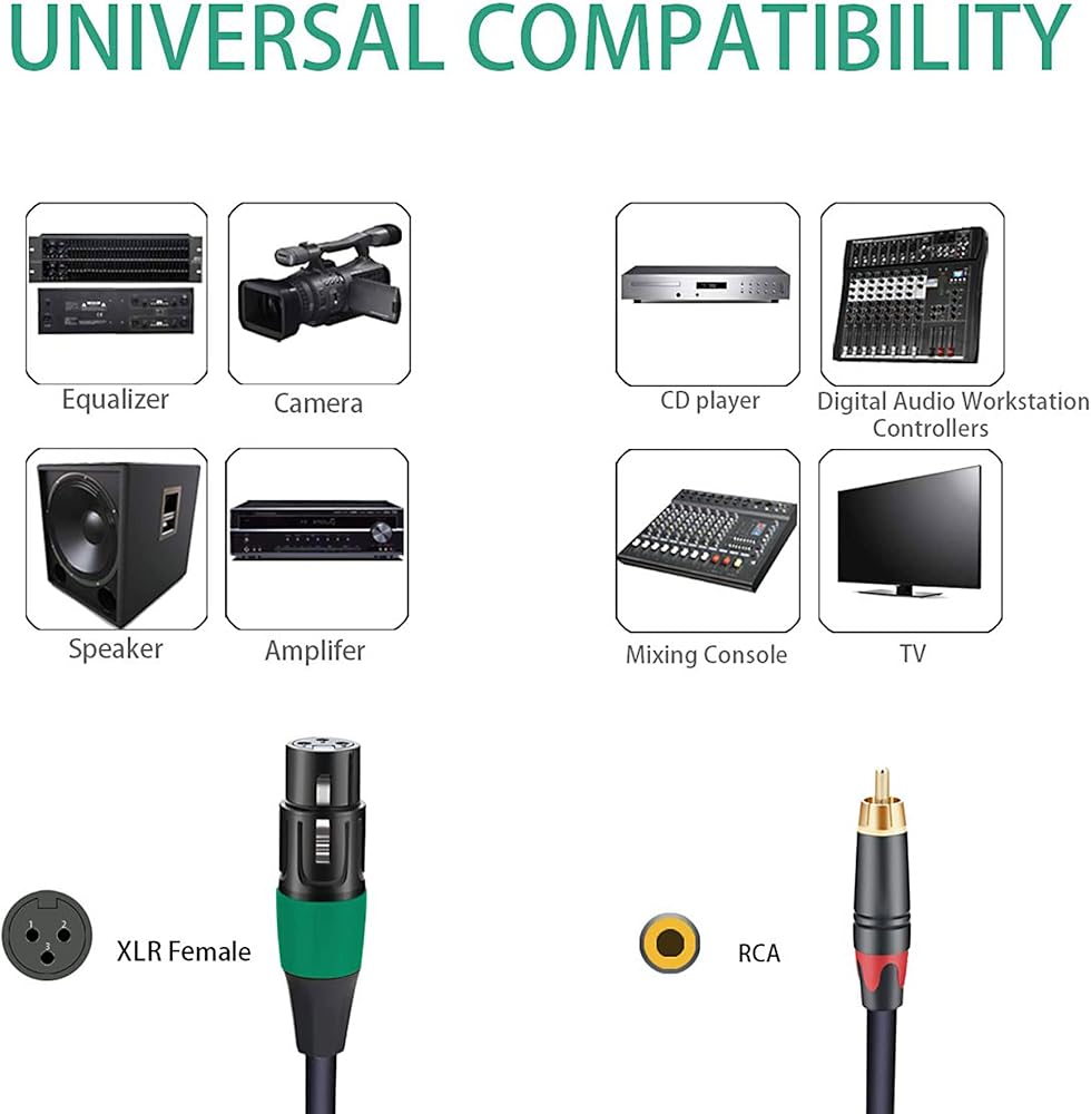توافق فائق: هذه الكابلات رائعة لتوصيل مخرجات الخطوط من أجهزة الصوت مع منفذ الصوت XLR إلى جهاز استقبال AV، ومكبر الصوت، ونظام صوت ستيريو هاي فاي، ونظام المسرح المنزلي، وصوت الكمبيوتر، ومعدات التسجيل، ومكبر الصوت، والتليفزيون، والأقراص المضغوطة، وأقراص DVD، والمزج وحدة التحكم، وأكثر من ذلك.