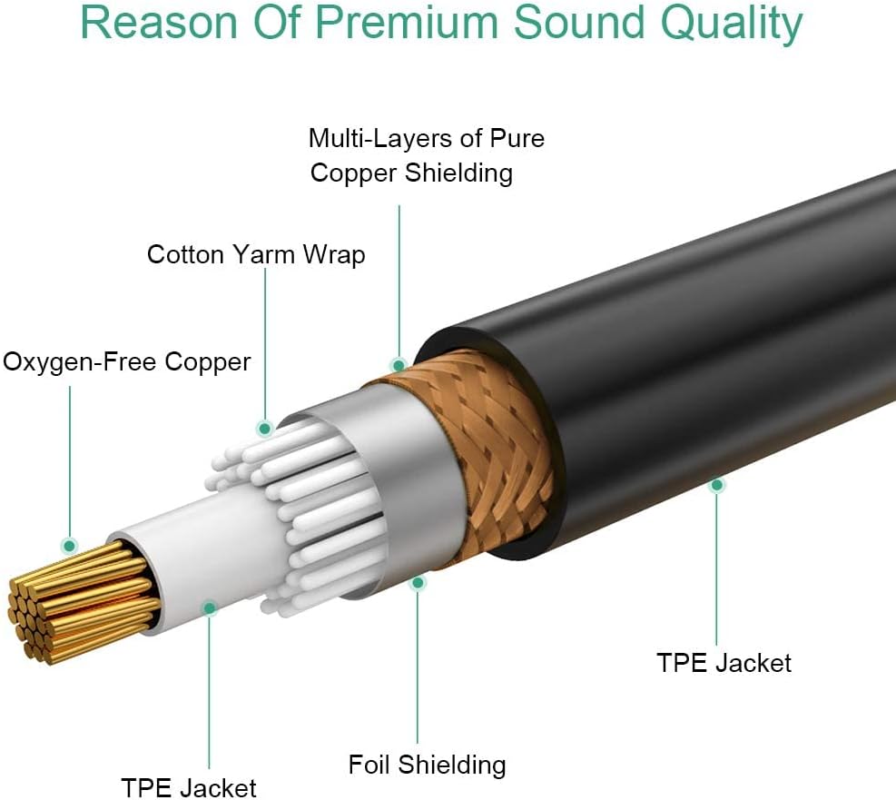 موصل OFC عالي النقاء: نحاس خالٍ من الأكسجين 4N مع درع يضمن جودة صوت عالية الدقة ويوفر أقصى قدر من التوصيل ووضوح الإشارة. اختيار رائع لمحبي الموسيقى، إنه رائع بشكل خاص للاستوديو أو العروض الحية.