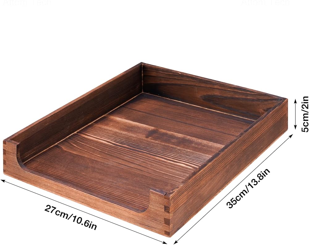 • ✔️【Natural Wood】Our desktop storage tray is suitable for country/modern farmhouse style, traditional/industrial style, retro style or minimalist style. It is made of natural pine wood, so each wooden board has a unique natural wood grain and color. The simplest charcoal baking process is used to restore the carbonized color and texture of the wood itself. Add a warm and sweet atmosphere to your bedroom, living room, office, and kitchen.