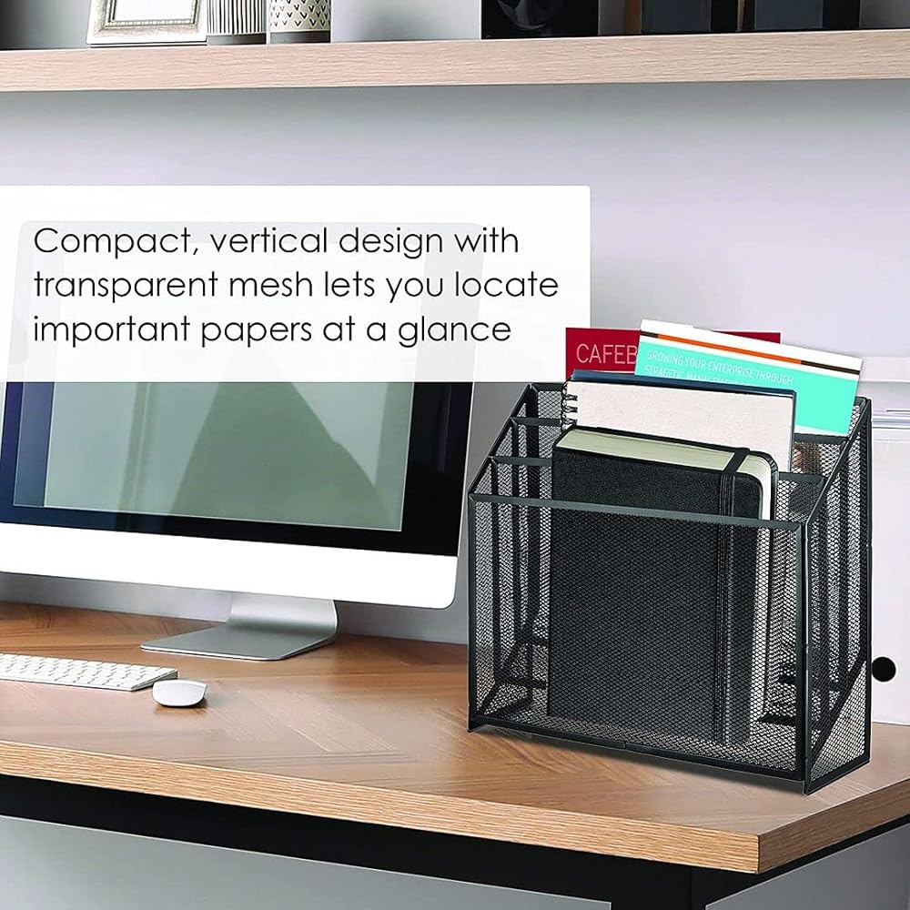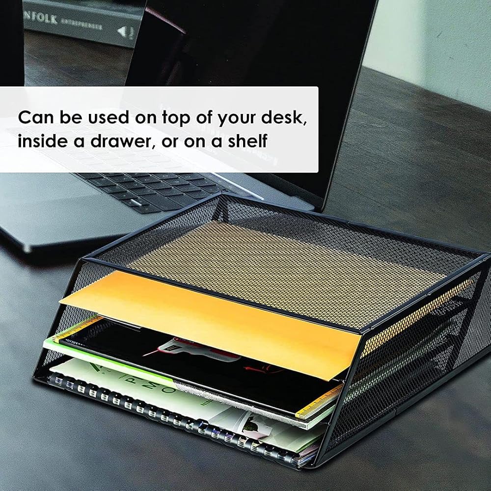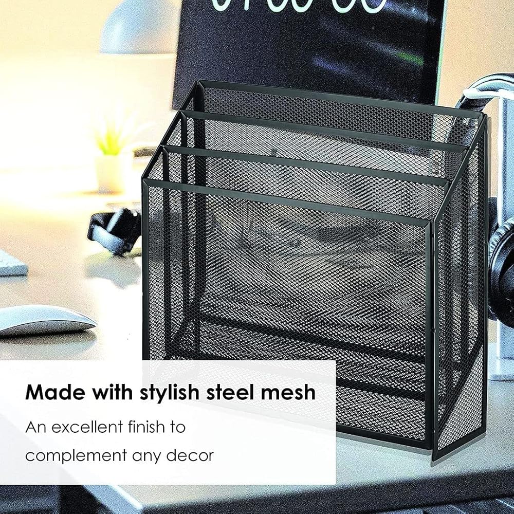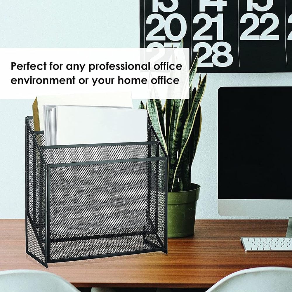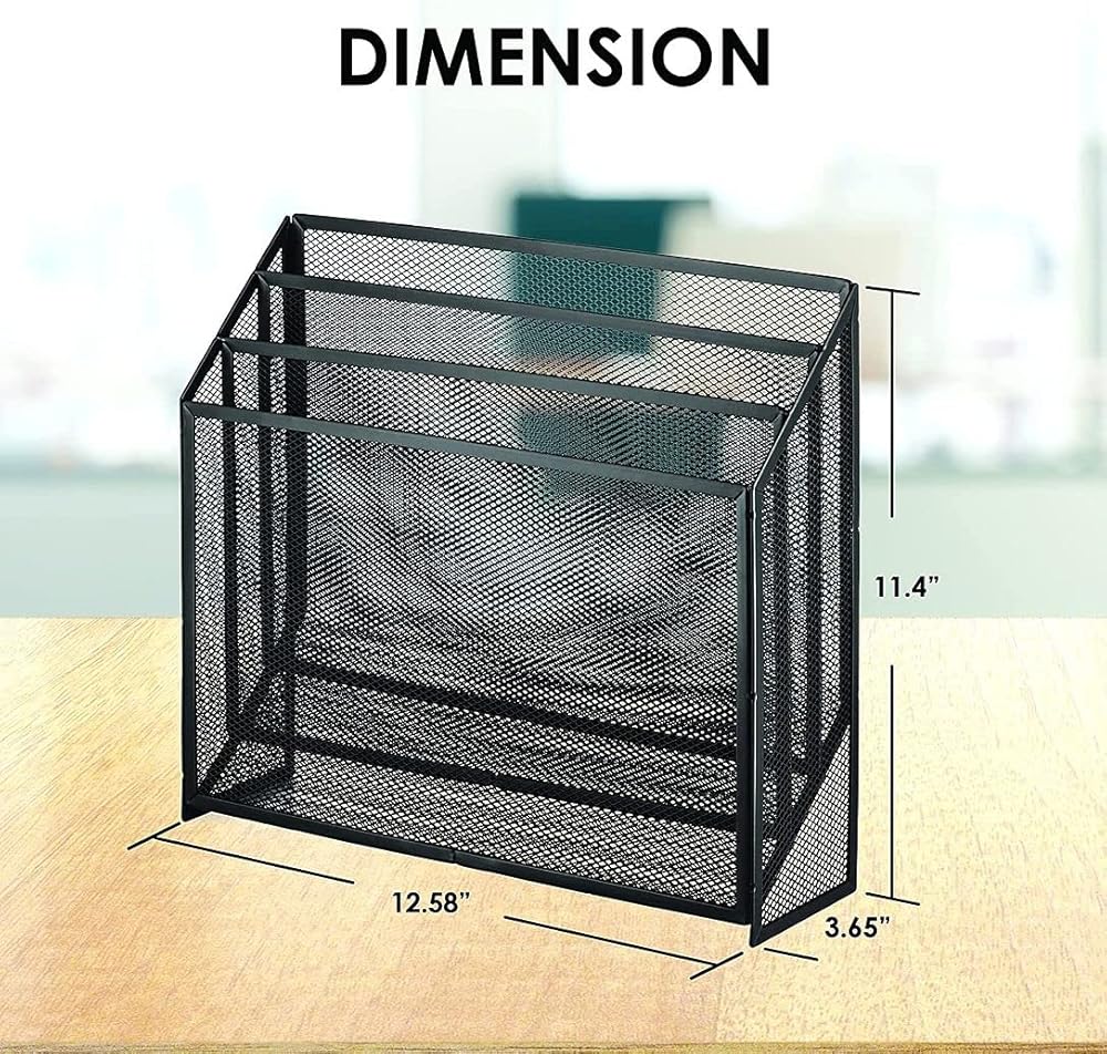 حامل ملفات مكتب شبكي متين - الهيكل المعدني لمنظم المكتب الشبكي الخاص بنا لن يلتوي أو ينحني، كما أن تصميمه الشبكي يسمح بسهولة المشاهدة، مما يوفر وقتك. إنه حجم مثالي لمكتبك وهو منظم رائع لتقسيم الورق يمكن أن يناسب معظم المستندات