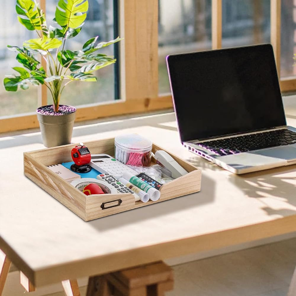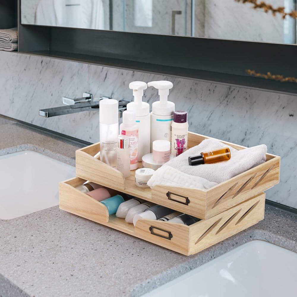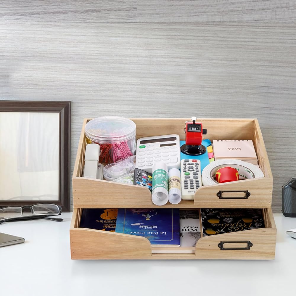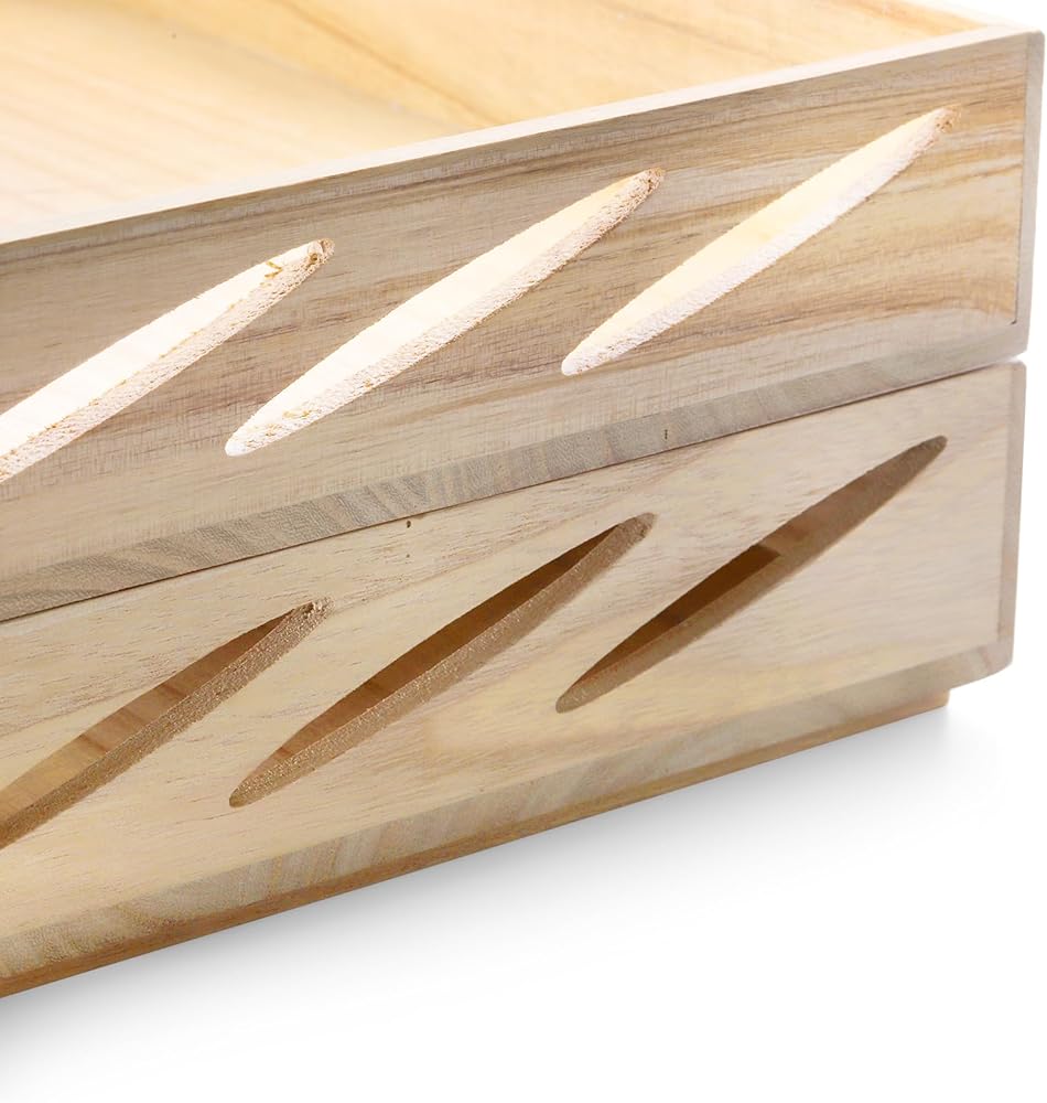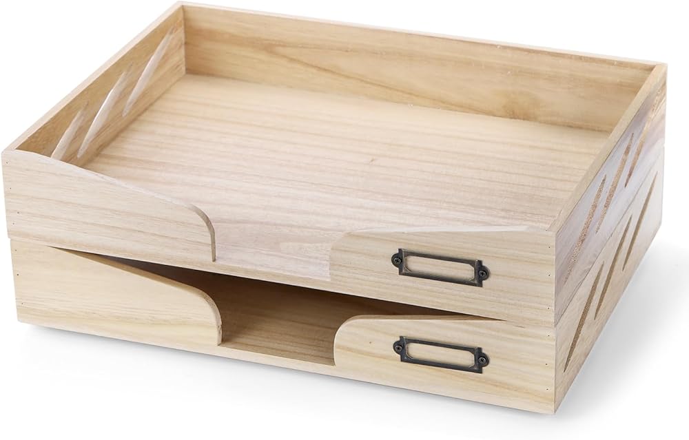 منظم صينية قابل للتكديس: يتميز الجزء السفلي من كل صينية بتصميم خاص يسمح لها بالتكديس بشكل مثالي وتوفير مساحة المكتب، ويمكنك استخدام الصينيتين الخشبيتين بشكل منفصل كصواني رسائل أو يمكنك فقط تكديسهما معًا.