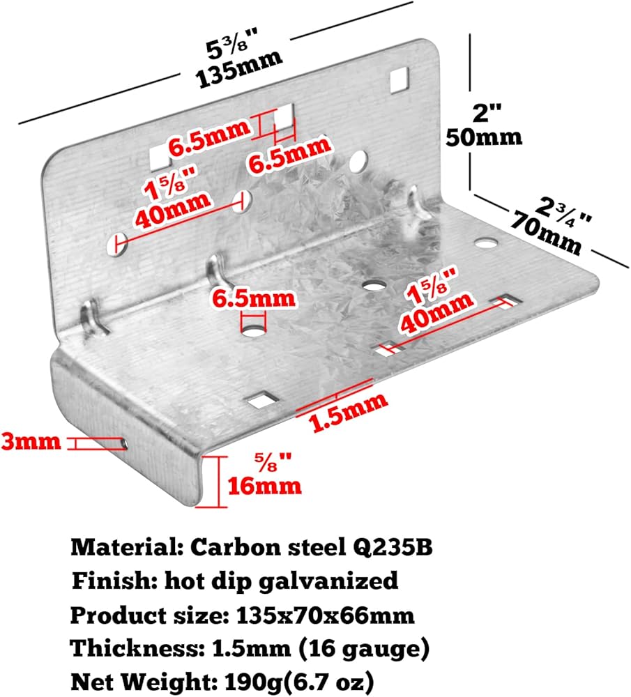 4 قطع من شماعات العارضة المنفصلة ذات الموصلات الهيكلية على الوجه، جميع شماعات العارضة المثبتة على الوجه مقاس 6 بوصات مقاس 16، شماعات ذات أبعاد من الصلب المجلفن بالغمس الساخن