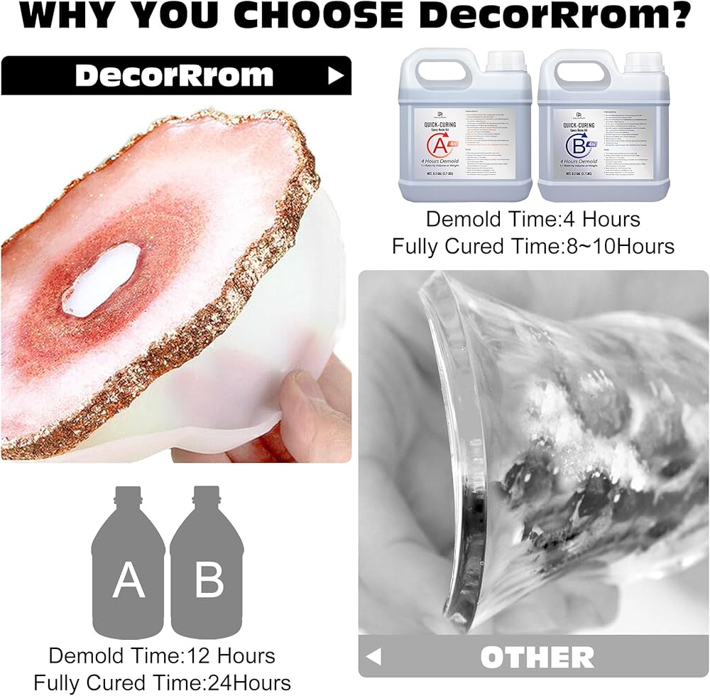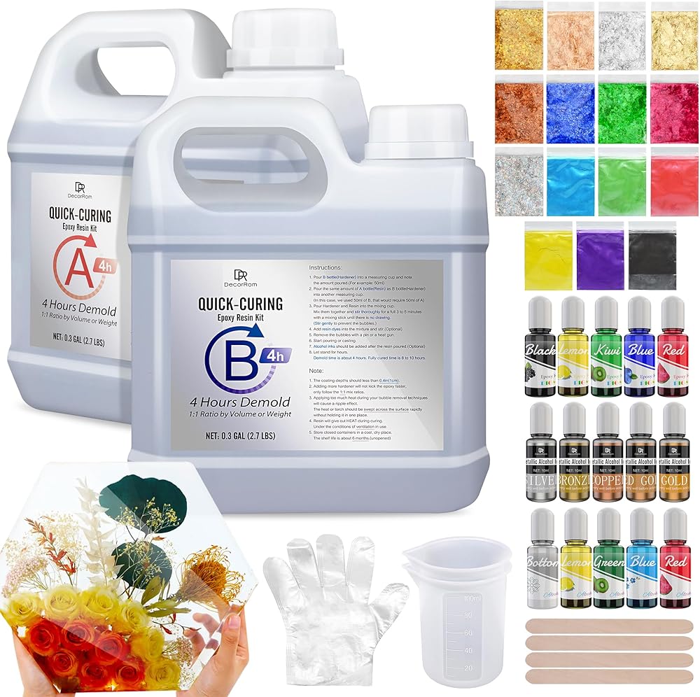 تركيبة محسنة للتشكيل لمدة 4 ساعات - يوفر راتنجات الإيبوكسي المعالجة السريعة المطورة لدينا قالبًا سريعًا للغاية لمدة 4 ساعات و8-10 ساعات من وقت المعالجة الكامل لتوفير وقتك الثمين. وهذا يعني أنه يمكنك إنتاج المزيد من العمل في وقت أقل. يأتي مع 0.6 جالون من راتنجات الإيبوكسي، 5 أحبار كحول، 5 أحبار معدنية، 5 صبغة راتنج سائلة، 6 مسحوق ميكا، 3 رقائق رقائق معدنية، 6 ملمع ناعم، 2 كوب خلط سيليكون، قفازات، عصي.