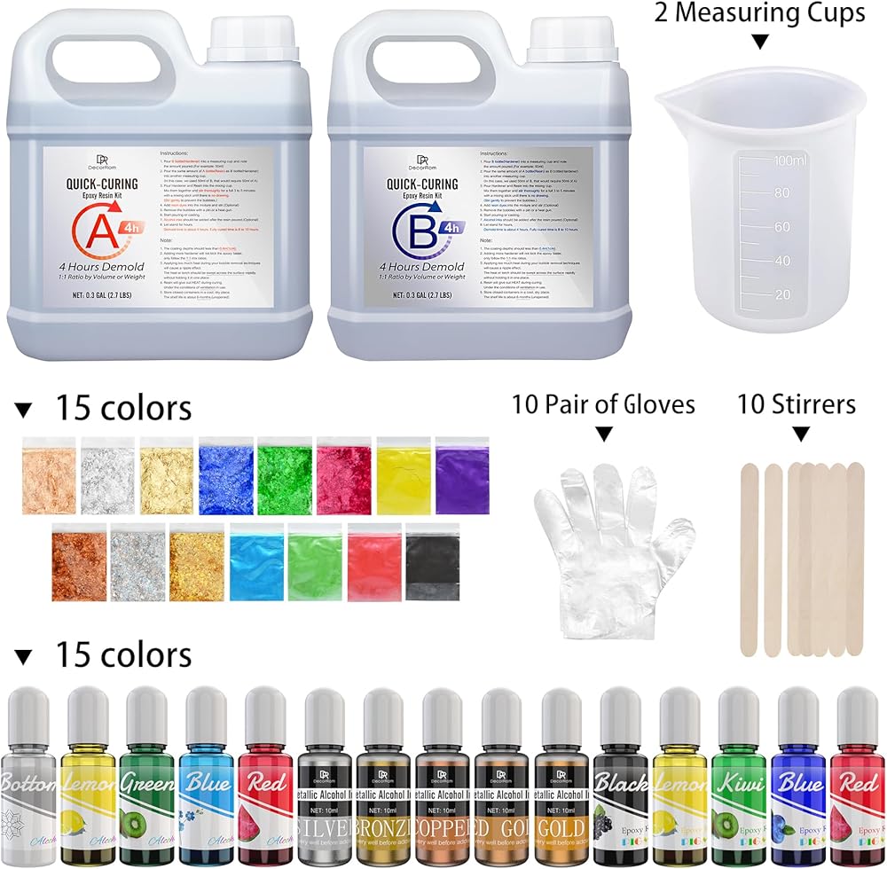 تطبيق متعدد الاستخدامات - مجموعة راتنجات الإيبوكسي سريعة المعالجة مثالية لجميع صب الراتنجات الصغيرة، والطلاء، والصب الضحلة، والقوالب، وصناعة المجوهرات، والقلادة، وسلسلة المفاتيح، والأكواب، وصندوق الراتنج، والطبقة العلوية لأي مشروع والمزيد. توفر الأنواع المختلفة من أصباغ الراتنج ألوانًا نابضة بالحياة وإمكانيات لا حصر لها لفن الراتنج.