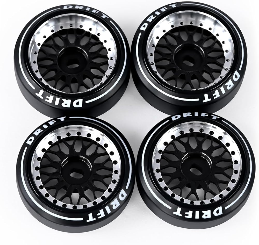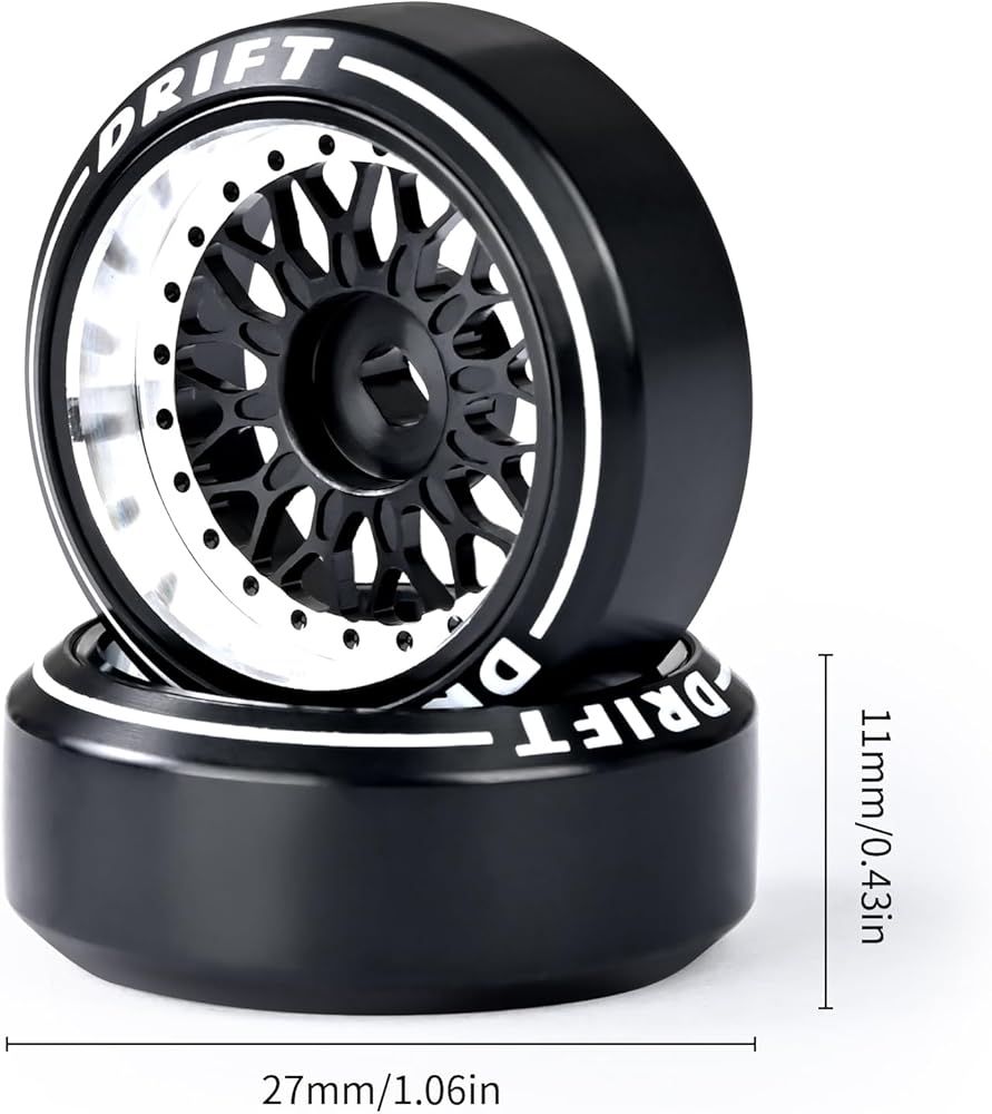 Abendor 4 Pcs Rc Drift Wheels & Logo Drift Tires for 1/24 1/28 Wltoys, [2N+2W] Aluminum Alloy Rims with Rc Drift Car Tires for 1/24 1/28 Mini-Q Mini-D TG Racing Wltoys K969 K989 284131