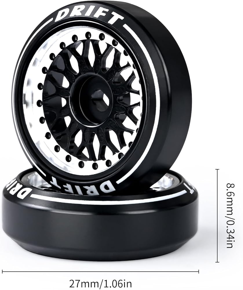 • 2.Big Size Wheels:Its out diameter is 27mm,it is bigger than normal wheels,suit for most 1/24 1/28 rc drift car like Mini-Q Mini-D Wltoys 284131 K989 TG Racing