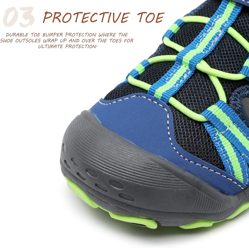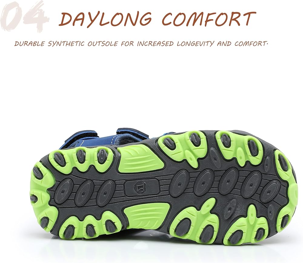احتكاك فائق: مصمم مع وضع اللعب في الهواء الطلق في الاعتبار، يضمن النعل الخارجي الصناعي بنية خفيفة الوزن وقبضة ممتازة. يوفر صندل الأطفال الراحة والحماية التي تحتاجها أقدام الشباب للأنشطة البرية والمائية.