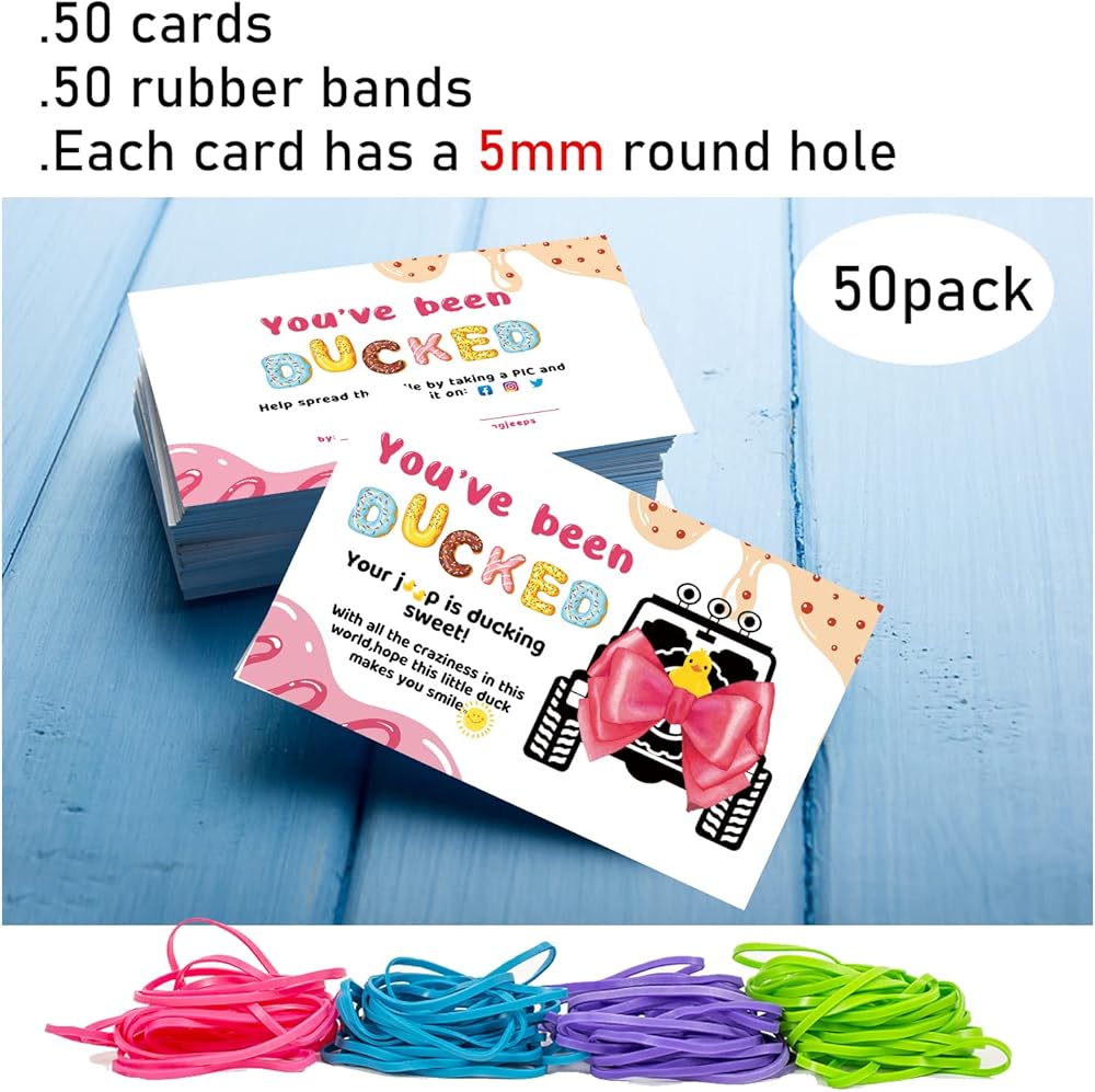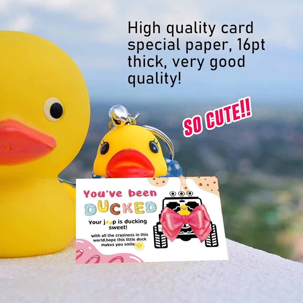علامات البط، لقد تم بطة، علامات Dcuk Duck، بطاقة ألعاب Duck Ducking، 3.5 × 2 بوصة، 50 بطاقة، 50 شريط مطاطي، بطة صفراء مع تصميم سيارة الدفع الرباعي (7FD02)