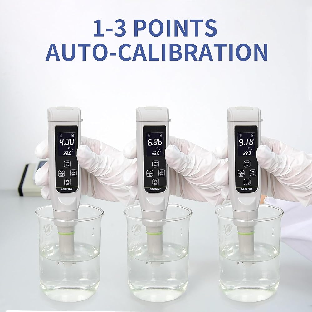 ✐【معايرة تلقائية】يحتوي جهاز اختبار درجة الحموضة المائية على وظيفة معايرة تلقائية من 1-3 نقاط، وهو مجهز بمسحوق معايرة درجة الحموضة 4.00/الأس الهيدروجيني 6.86/الأس الهيدروجيني 9.18، يمكن لكل عميل إكمال المعايرة وفقًا لدليل المستخدم.