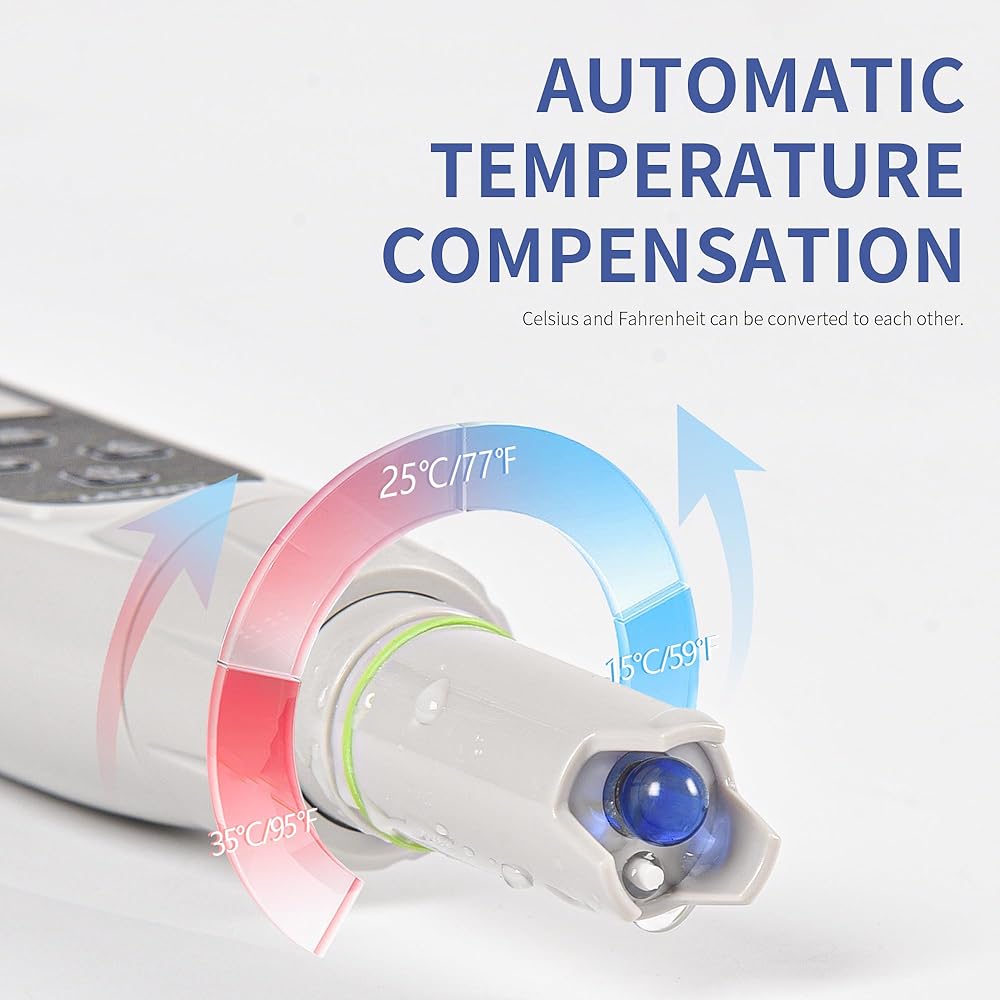 ✐【دقة عالية】نطاق الأس الهيدروجيني: -2.00~+16.00 درجة حموضة؛ دقة درجة الحموضة: ±0.01 درجة حموضة؛ درجة الحرارة. النطاق: 0-60.0 درجة مئوية/32-140 درجة فهرنهايت؛ درجة الحرارة. القرار: 0.1 درجة مئوية/1 درجة فهرنهايت. يحتوي قلم الأس الهيدروجيني على مسبار عالي الحساسية للقراءة السريعة. ومبني بنظام ATC، يمكن تعديل جهاز اختبار المياه وفقًا لدرجة حرارة الماء ونوعية الماء.
