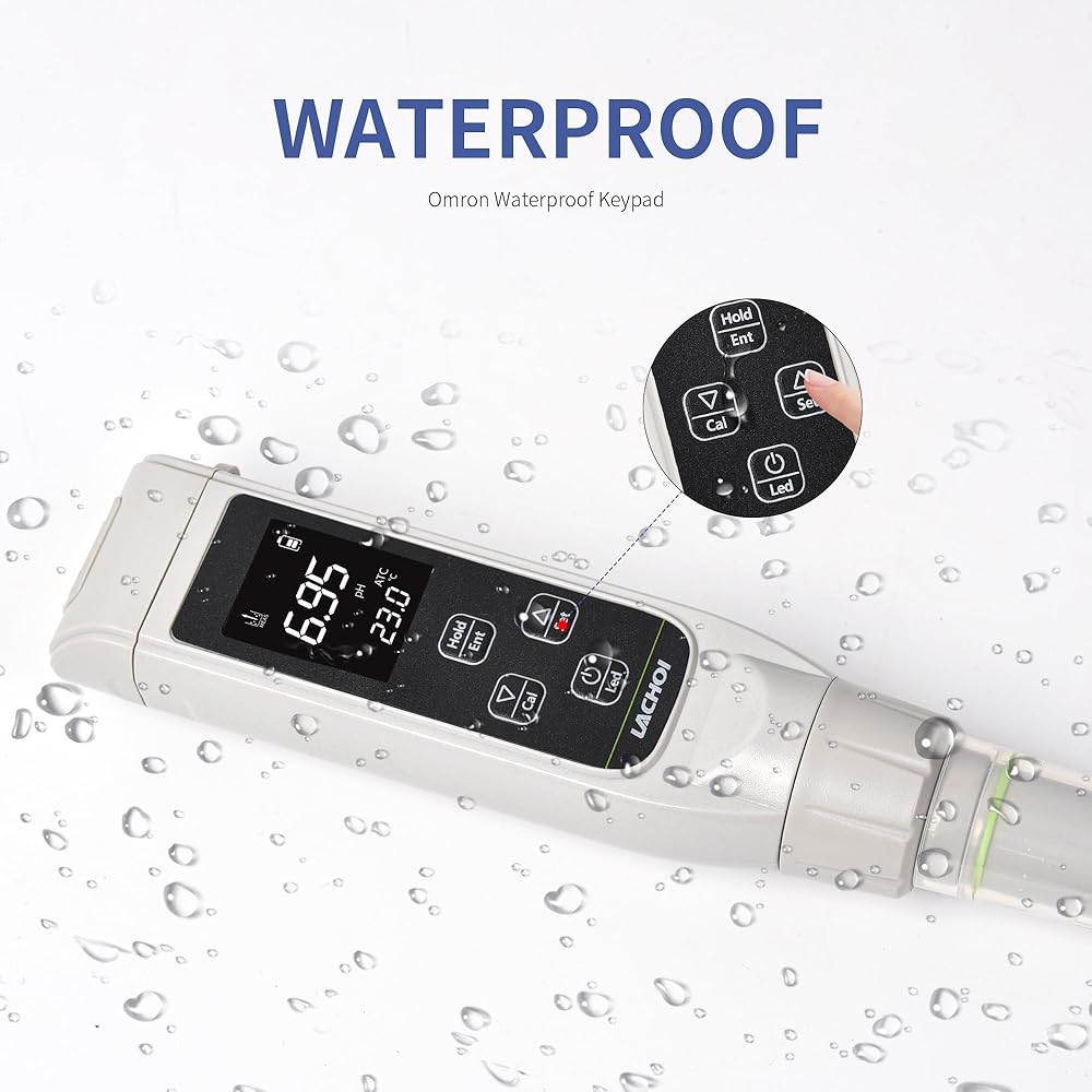 ✐[مقاوم للماء] مقياس الرقم الهيدروجيني الرقمي مقاوم للماء في جميع الأنحاء ويحتوي على جهاز طفو مدمج، لذلك لا داعي للخوف من السقوط في الماء. ويستخدم أزرار Omron المقاومة للماء بعمر افتراضي يزيد عن 20000 دورة.