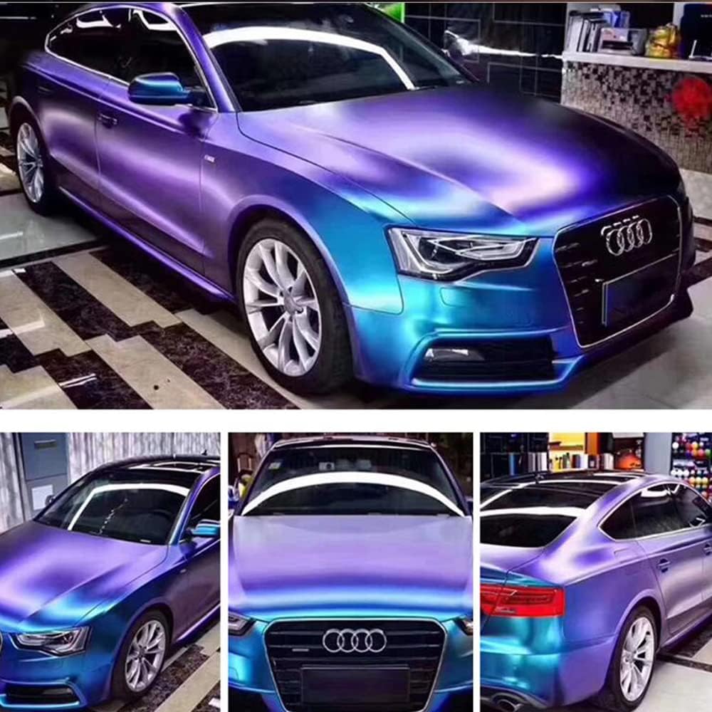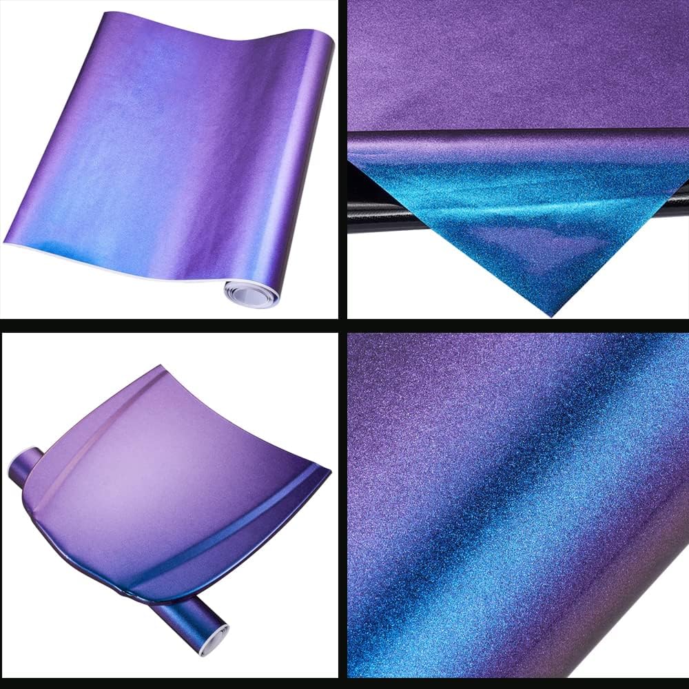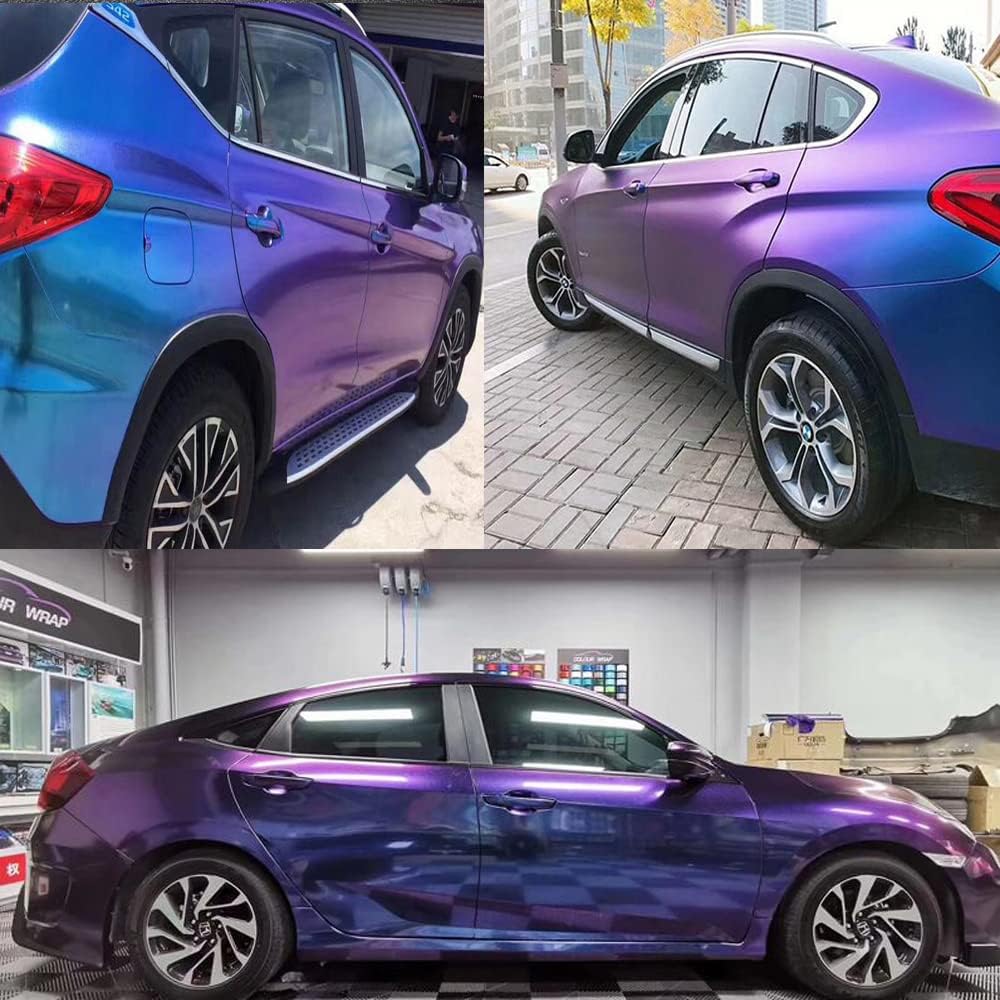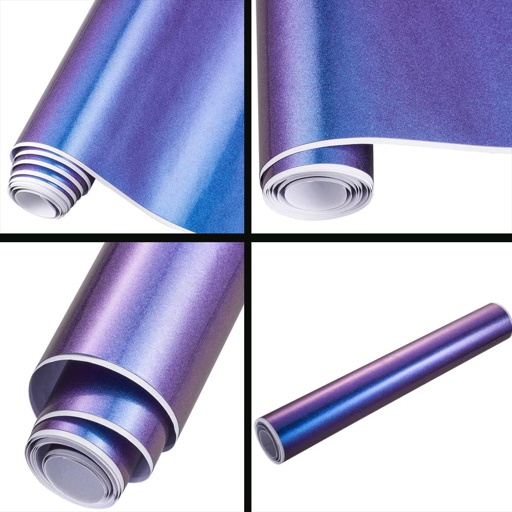ملصق XhuangTech مطفأ اللمعة/لامع من مادة الحرباء المعدنية اللامعة من الفينيل لجسم السيارة، ملصق لاصق لجسم السيارة، إصدار فقاعات الهواء (أزرق أرجواني معدني لامع، 60 بوصة × 8 بوصة (1.52 متر × 0.2 متر)
