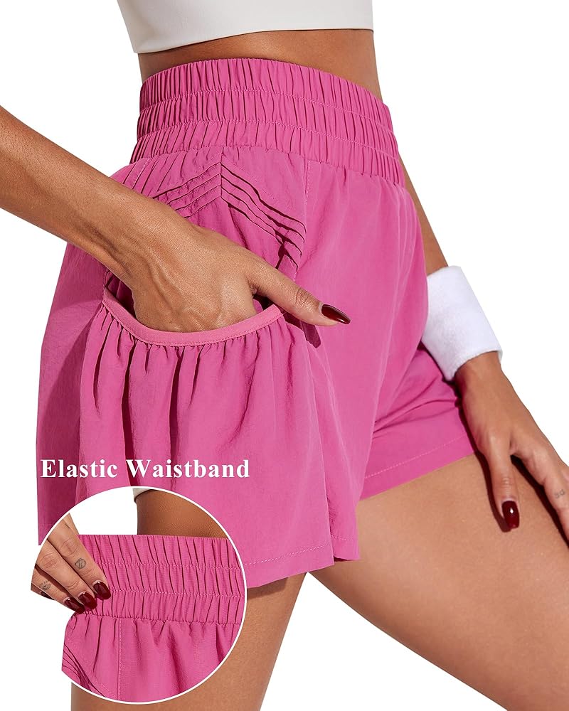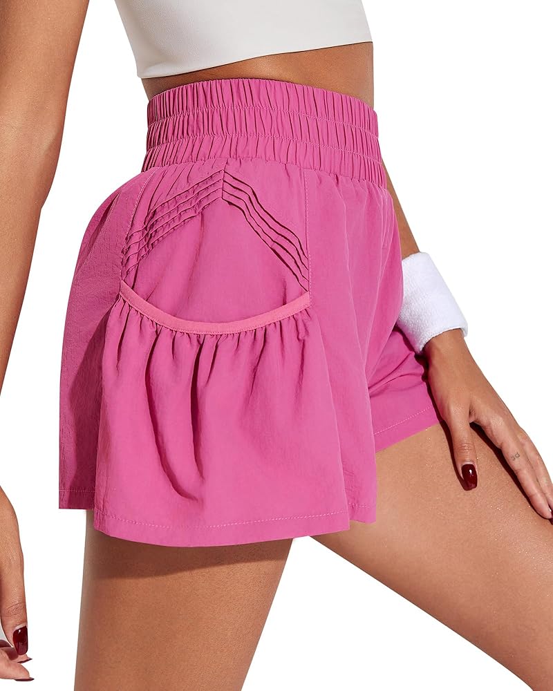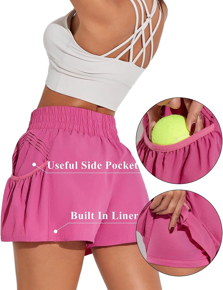 شورت نسائي رياضي عالي الخصر للتمرين والجري والجيم شورت على شكل فراشة مع جيوب شورت صيفي سريع الجفاف
