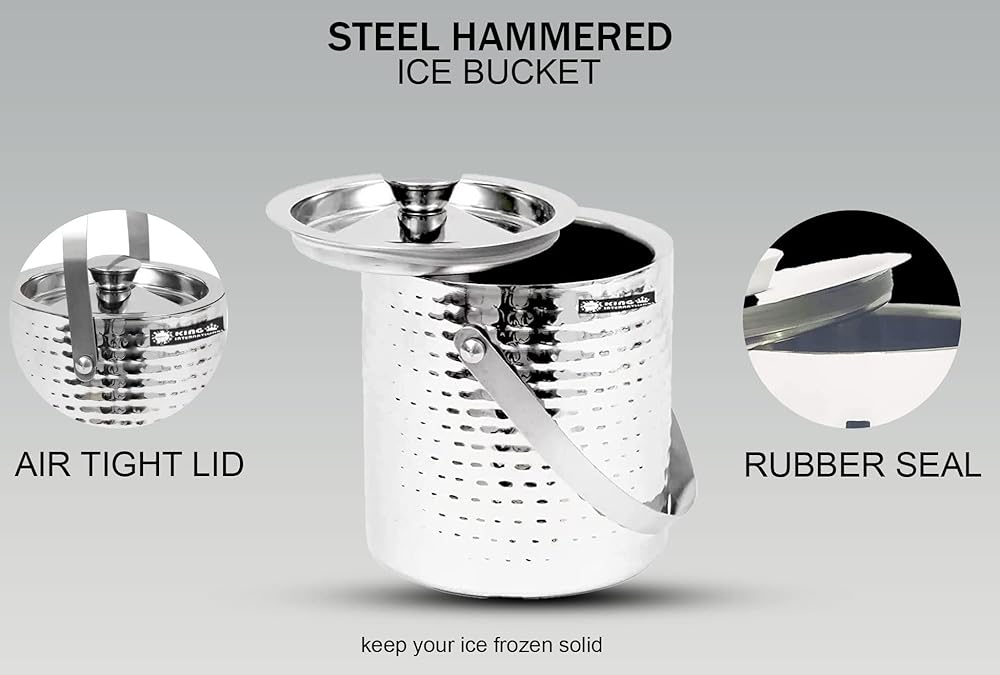 حاويات معدنية تحافظ على الثلج لفترة أطول - دلو الثلج مصنوع من الفولاذ المقاوم للصدأ مزدوج الجدار للحفاظ على صلابة الثلج الخاص بك. يأتي مع غطاء محكم الغلق، وختم مطاطي يغلق درجة الحرارة بشكل فعال للحصول على أقصى قدر من العزل.